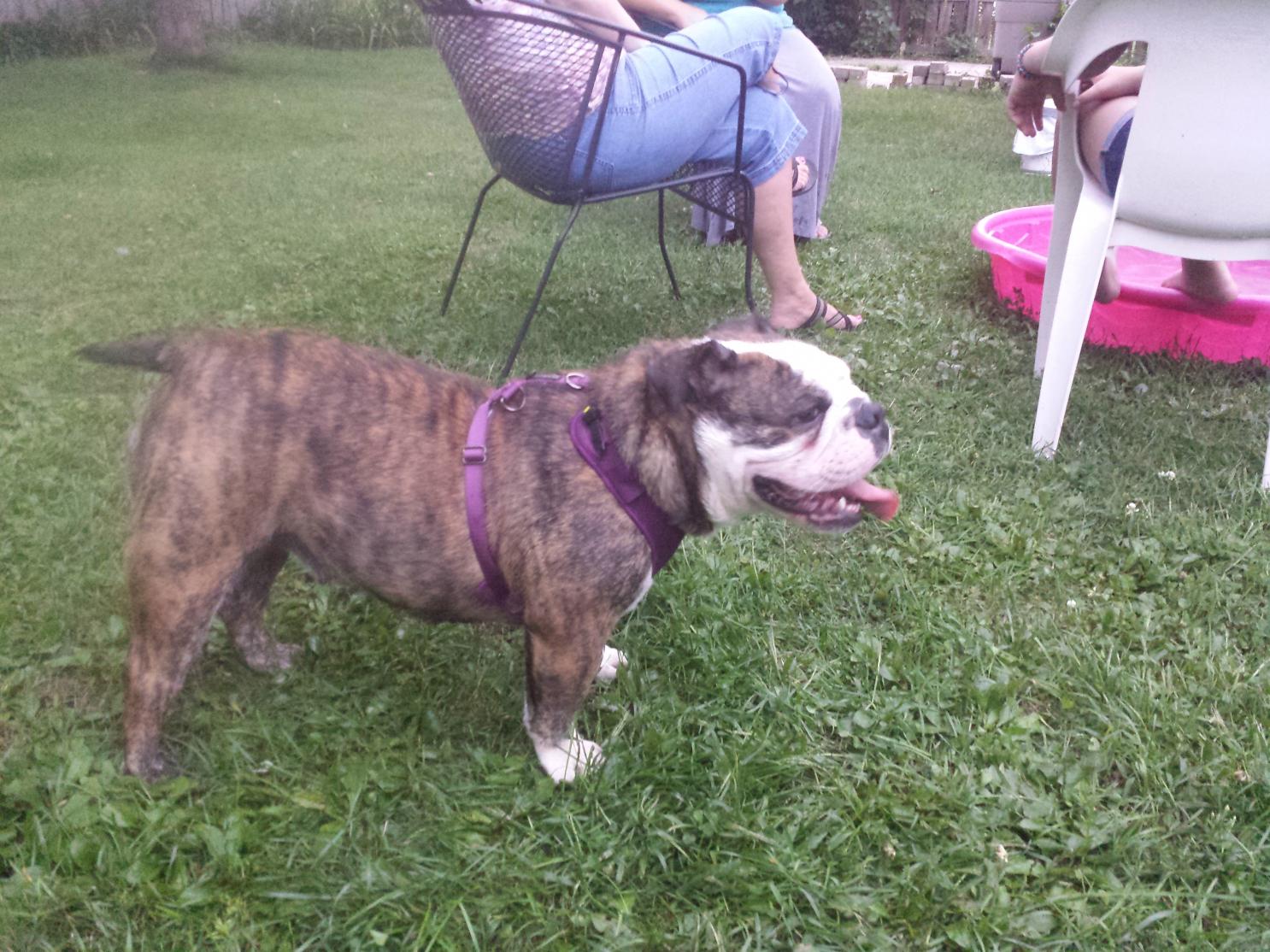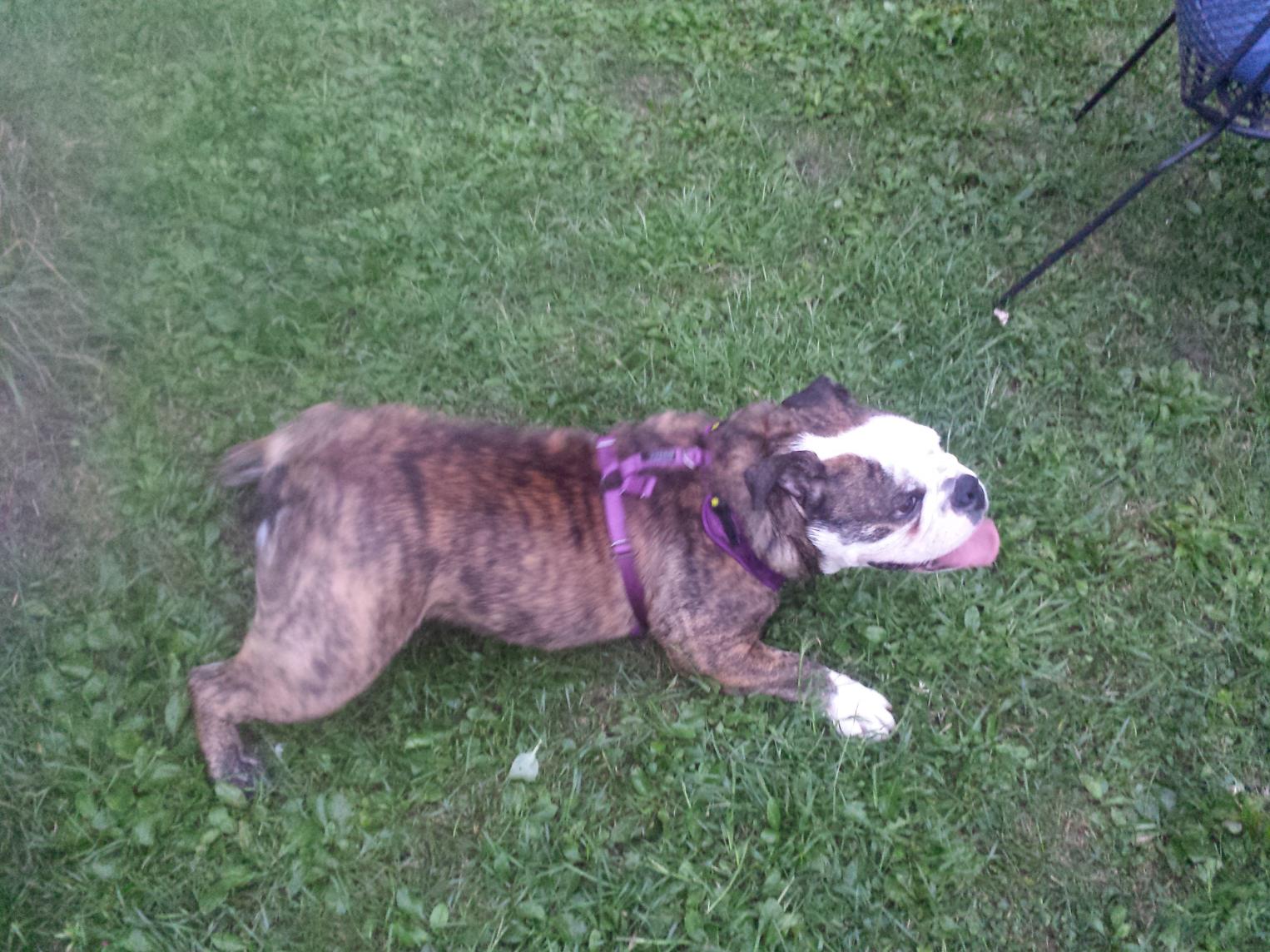 Ruby is the brindle. At 7 months she is 54 lbs. The White one is her sister(same Dad) Cleopatra at 18 months she weighs 50 lbs. @ddnene