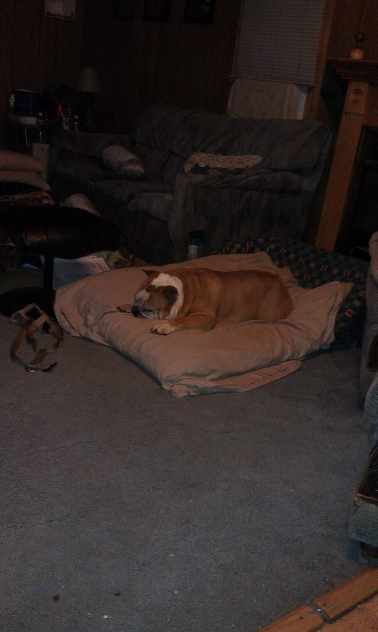 well unfortunately she doesnt have a crate. i got her when she was one and she has never been crated so thats not an option. i will see how it goes n maybe in a few days i can bring them in and gate off the kitchen. either way they will be ok. they are warm n snug in their coats n have tarps around the small pen n new chips in the dogs houses. oh and their bowls to play with.So happy to hear she's home and the surgery is behind her, and even happier it wasn't pre cancer, and that the hernia was repaired. Hugs and kisses for Sarah that she recovers quick and she doesn't need any more surgeries. Poor sweet peanut. Give her extra TLC and cuddles from us as well. Maybe you could more her crate up to your room, or another part of the house where she could recuperate away from the other two dogs, so they don't have to stay outside? Good luck, and keep us posted on her recovery.