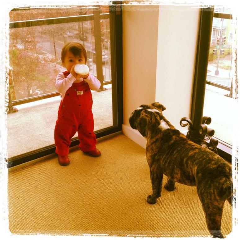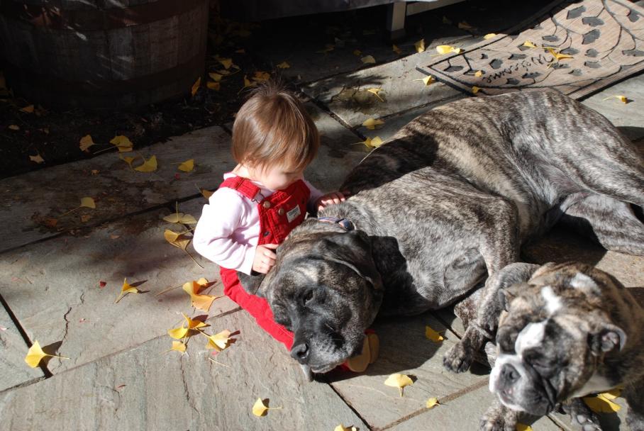 Baby Lia playing with her sister Abi and Mr. Seamus