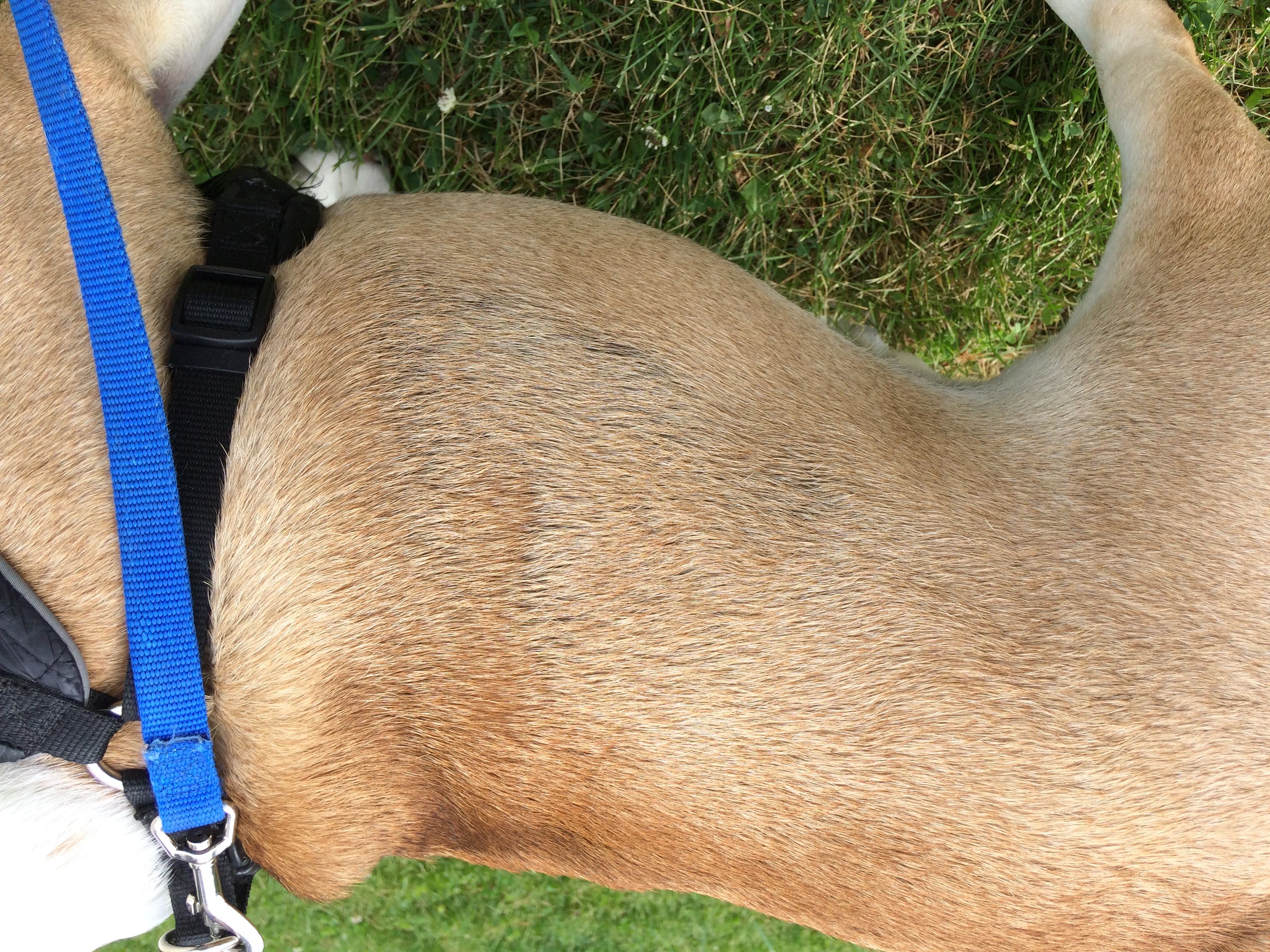 No scabs. Hobbs is 4-5 years old. We have an appointment with a vet Thursday so we can get Heartworm and flea prevention