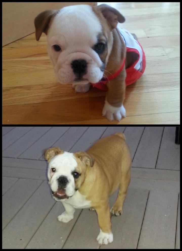 Roxie was 6lbs when we brought her home at 8 weeks old. It's been 3 months and she is 25lbs already! Very active, happy and healthy! Here are some pictures. We just love that face!