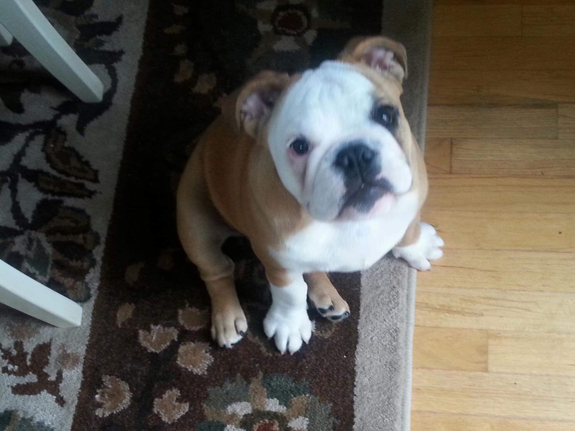 Lol sounds like my guy! He actually weighed 20-25 lbs at 3 months! At 5 months he was around 60 lbs. he's starting to slim down now at 11 months and 70lbs - he actually lost weight this month! This pic was taken today (disregard the blur lol it was hard to hold him still)