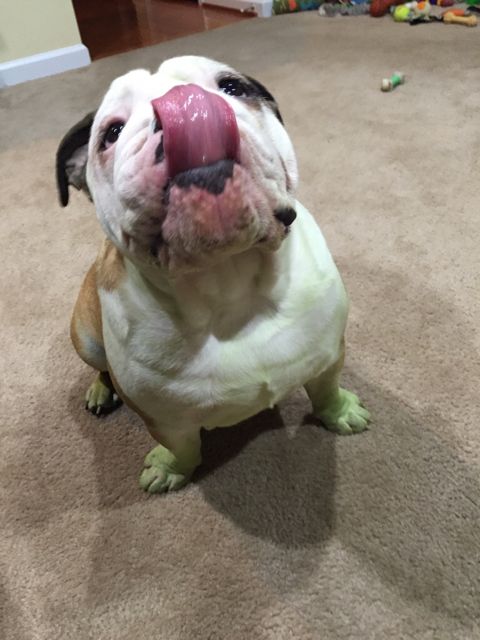 What a Beautiful Green Paw Bully Lambeau is, I just Love Lambeau so much. I love all of his pictures.
