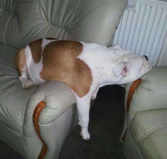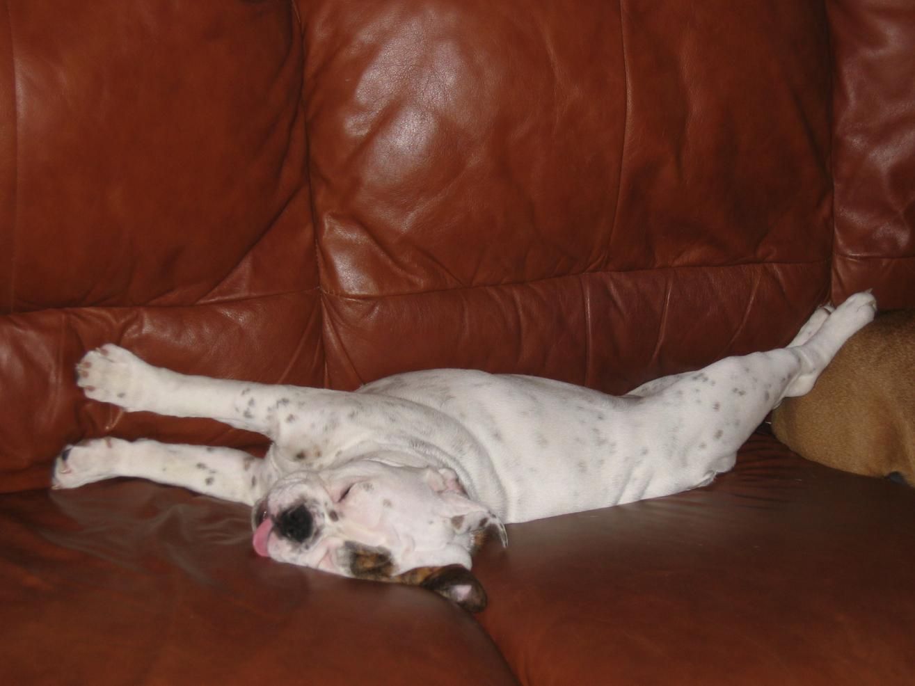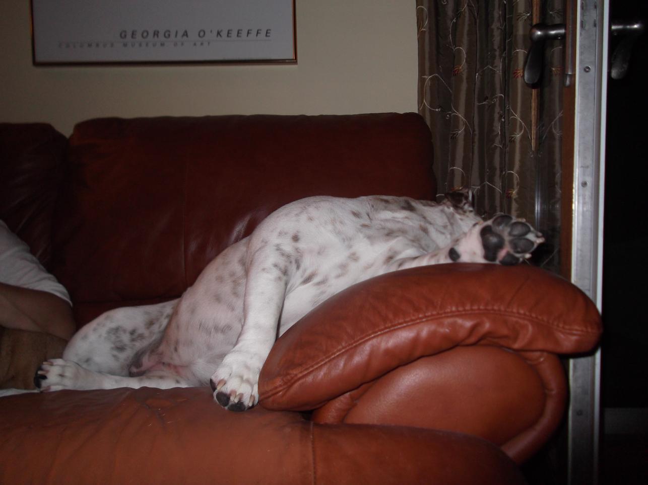 I have a few but my favourote is one from a couple of months ago. Meeko fell asleep on one sofa leaning on the chair.. not a good explanation but the pic will show you what I mean.. I have NO idea how he was comfy enough to sleep!!
