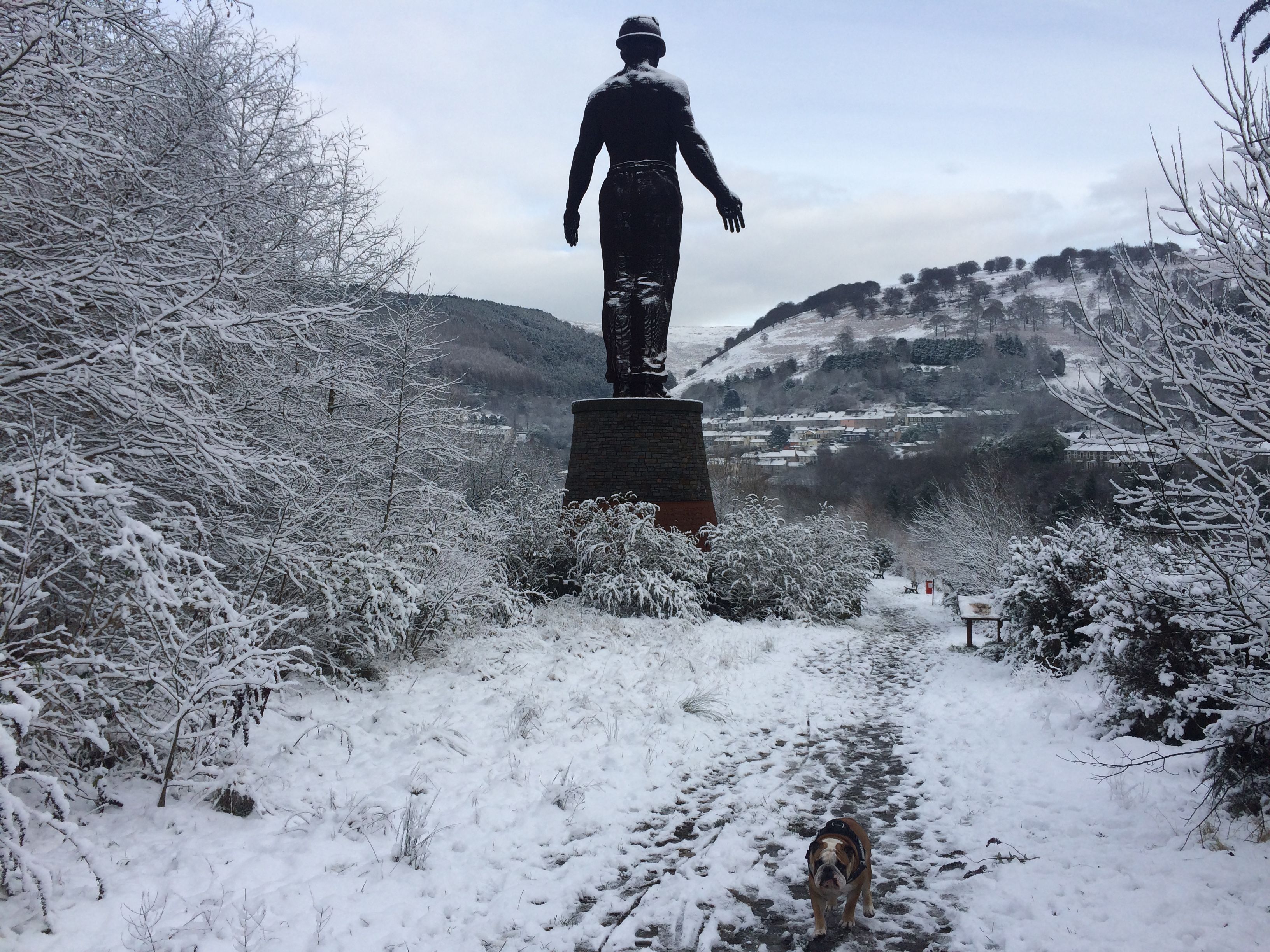 nice welsh merry xmas to you all .and a reply to the the photo is of the guardian for miners who lost there lives On 28 June 1960, at approximately 10:45, an explosion took place in the West District of the Old Coal Seam, caused by an ignition of firedamp. Coal-dust in the air ignited and the explosion spread almost throughout the district. Killing 45 out of the 48 men who worked in that district of the mine, the tragedy would have been even worse had it not been for maintenance work was being carried out on the O.10 face where otherwise 125 men would have been working. so the guardian is nice walking place for dogs in the valley