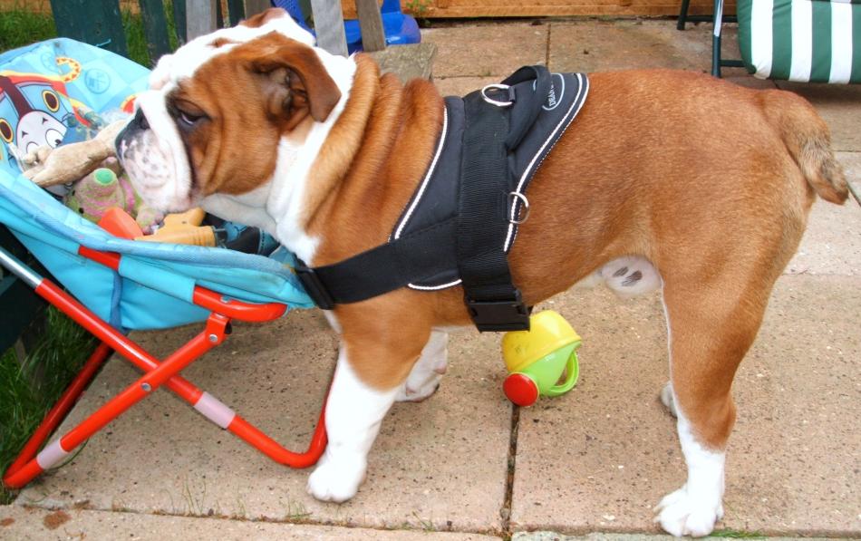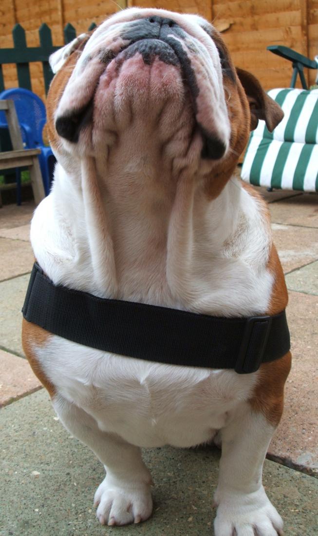 The front and belly belt are fully adjustable and I like the fact it's weatherproof, reflective and has a comfortable handle. I'm still trying to stop Reggie jumping up at people on the meet & greet! He likes it too and gets really excited when I sling it on. I'd recommend it for big bulldog boys![]()