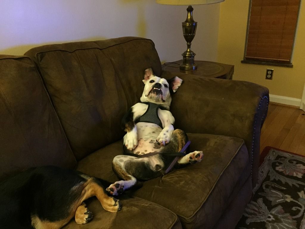 Next time she will probably have gone to the fridge and gotten a beer. Before we got this bull dog, we had a pretty strict no-dogs-on-furniture rule. At some point, Lucy obliterated that rule and our other dog Piper happily followed suit.