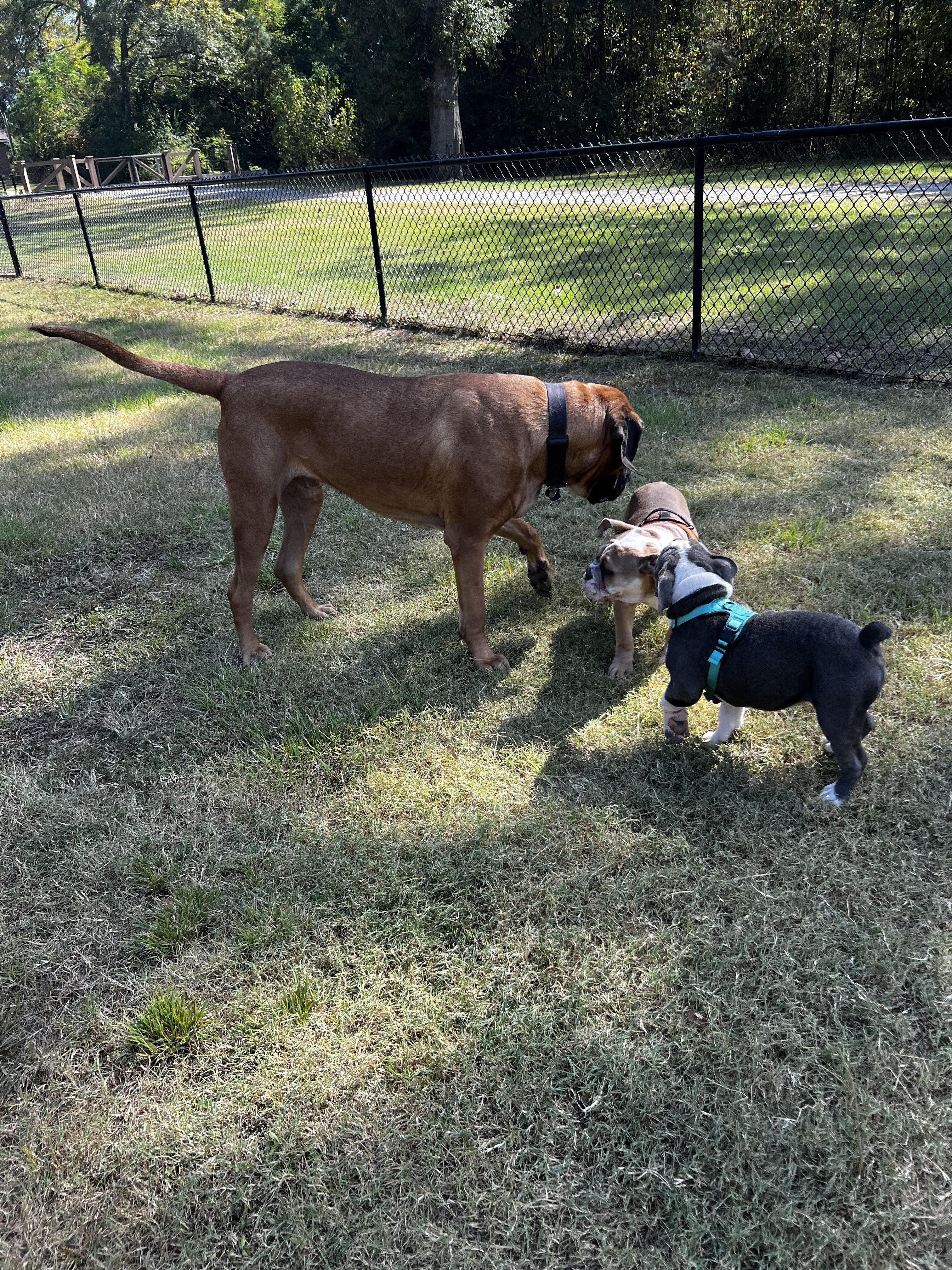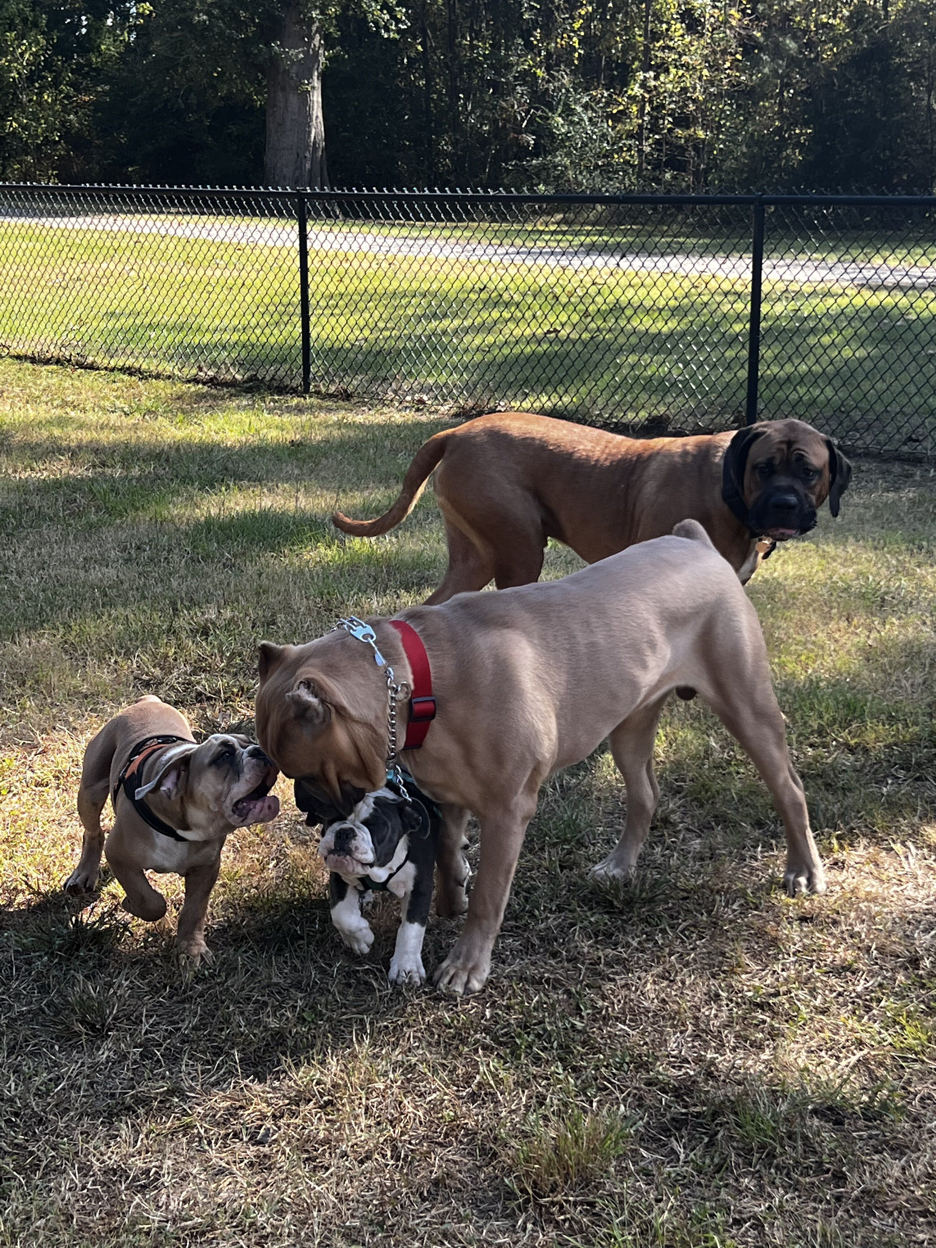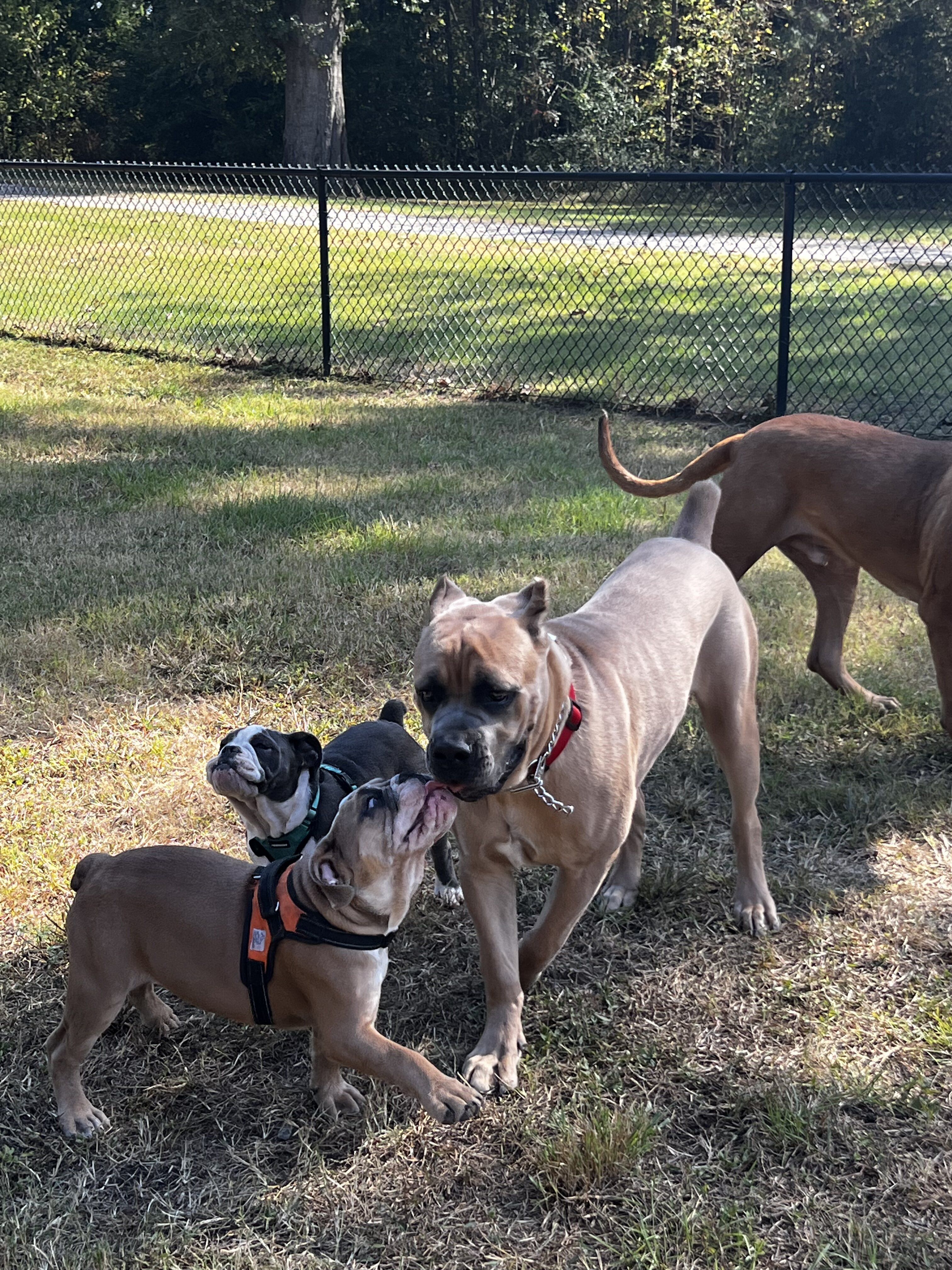 Some pictures of the pups at a dog park with a cane corso pup (10 month old) Ace and a mastiff (2 years old) I can remember his name. They all got along great.