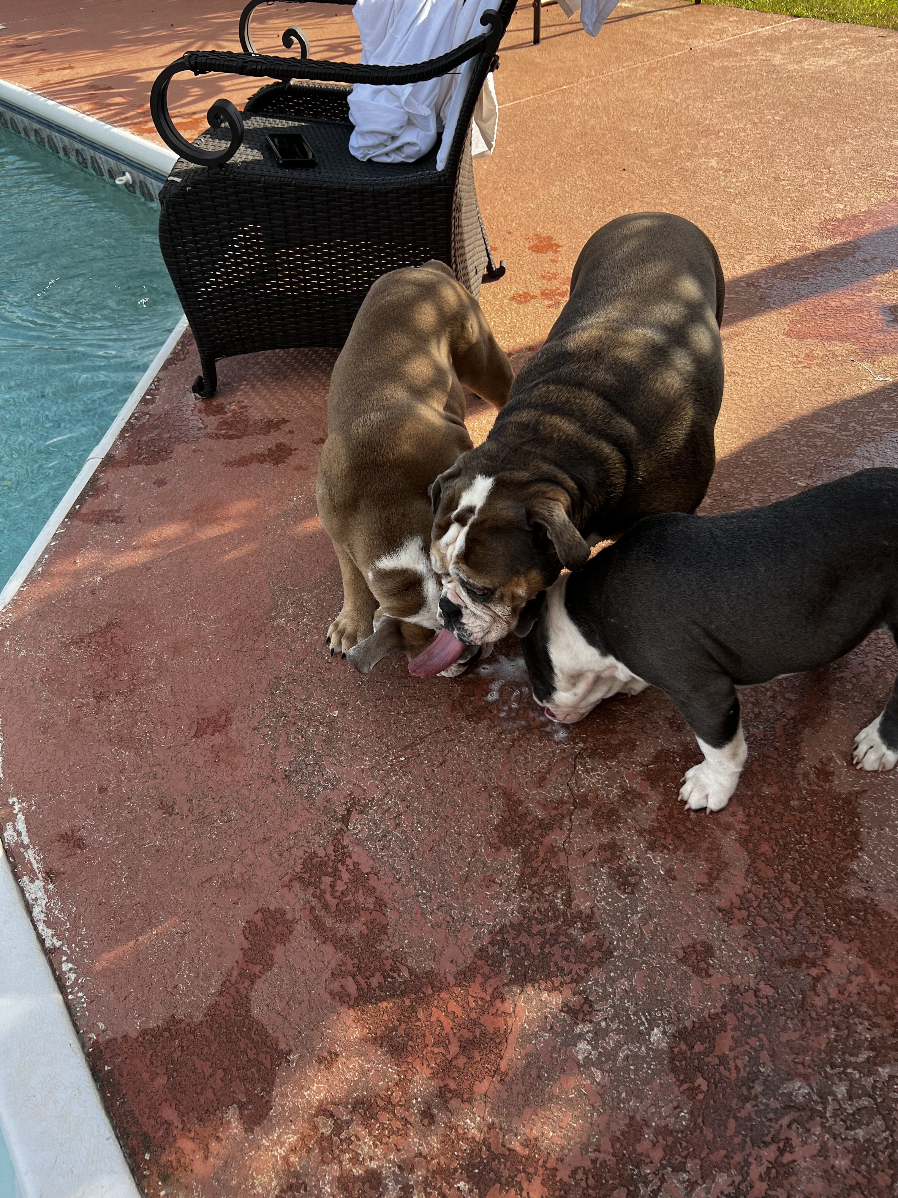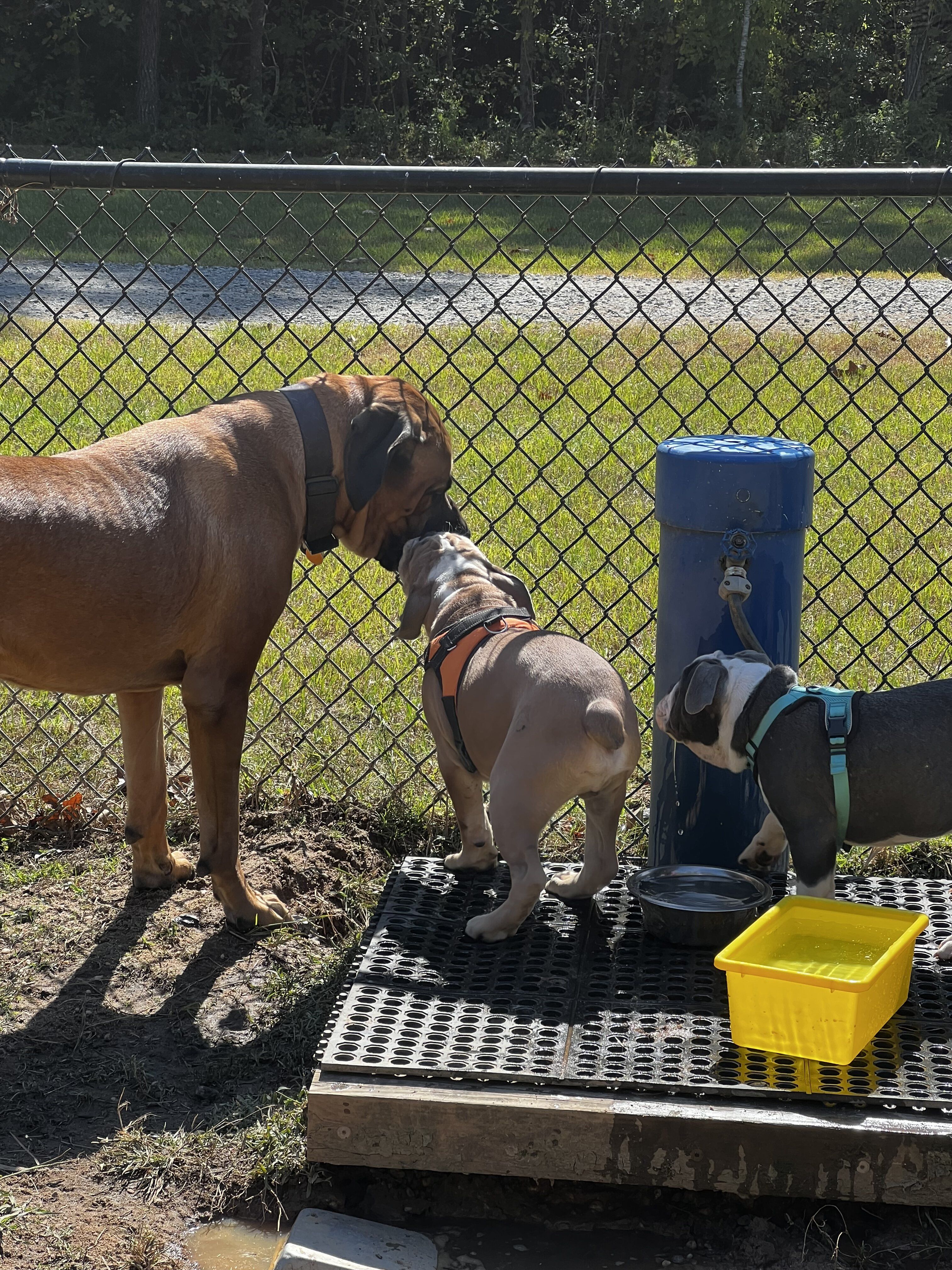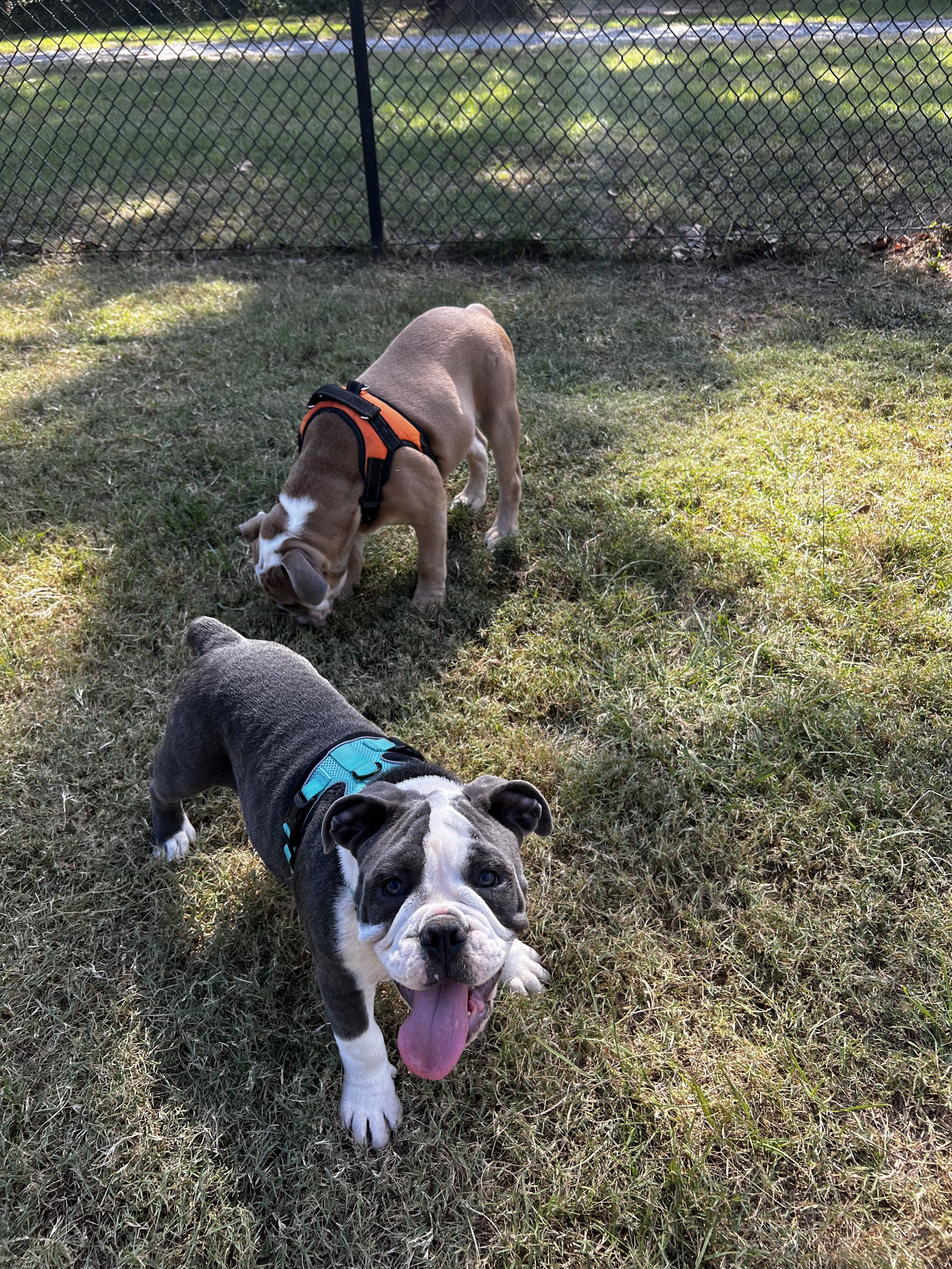Some pictures of the pups at a dog park with a cane corso pup (10 month old) Ace and a mastiff (2 years old) I can remember his name. They all got along great.
