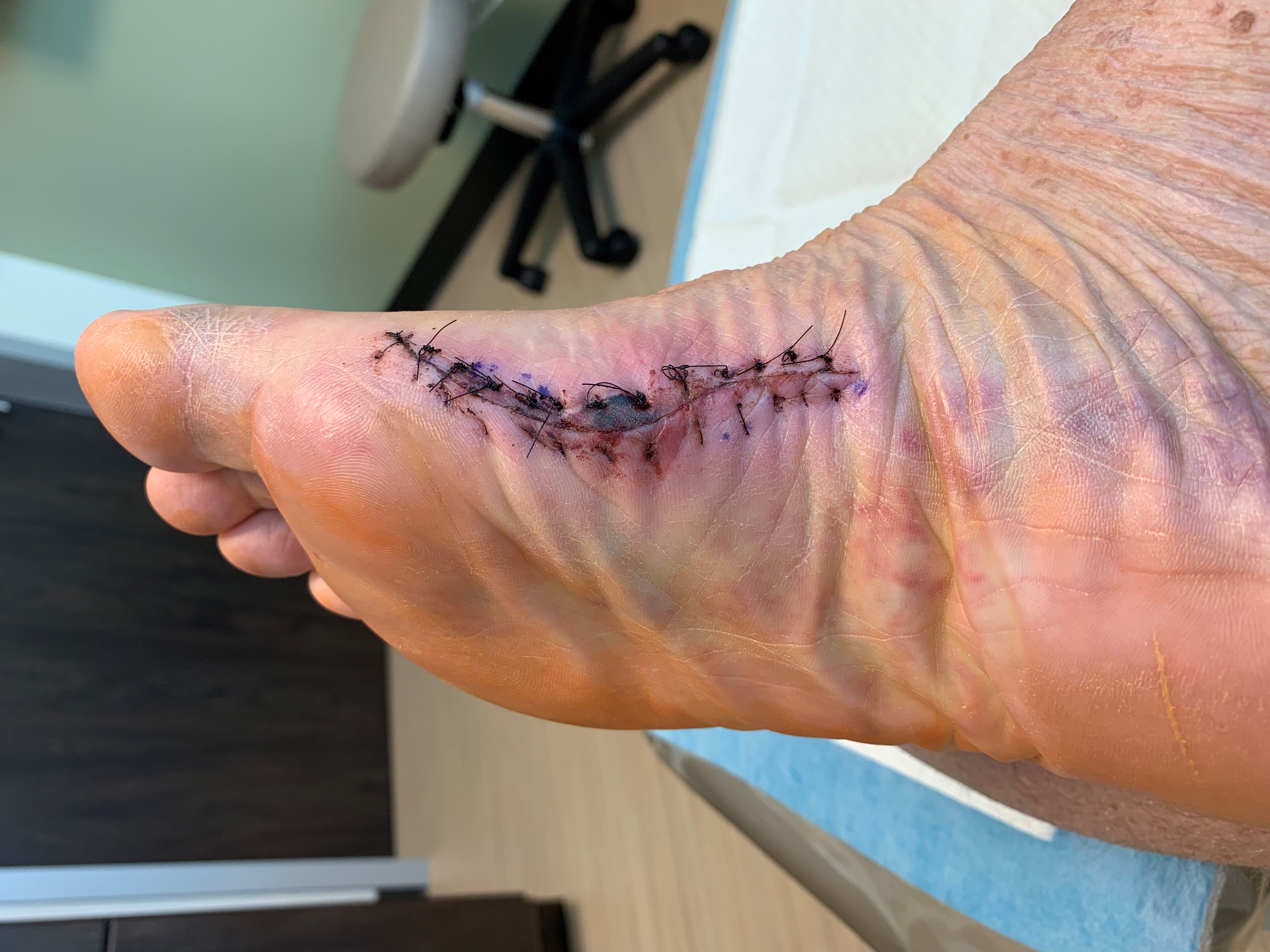 It was painful...there's 30 more sutures and a graft inside but it's 90% healed up now. I'm almost walking correctly again. My eyelashes have been plucked and should be good for a couple more weeks. When they grow back, they make me feel like I have something in my eyes that won't flush out...very annoying and irritating.