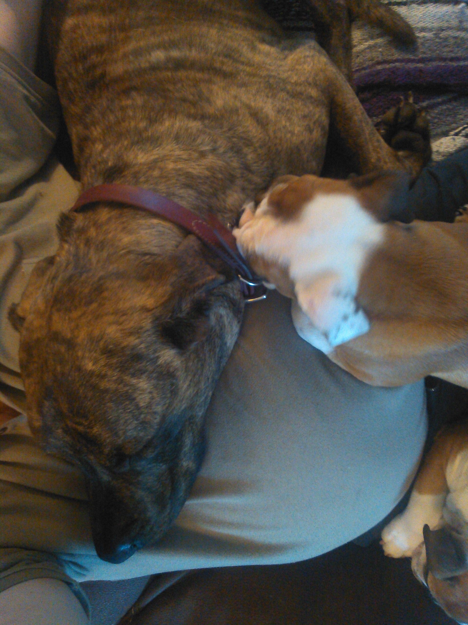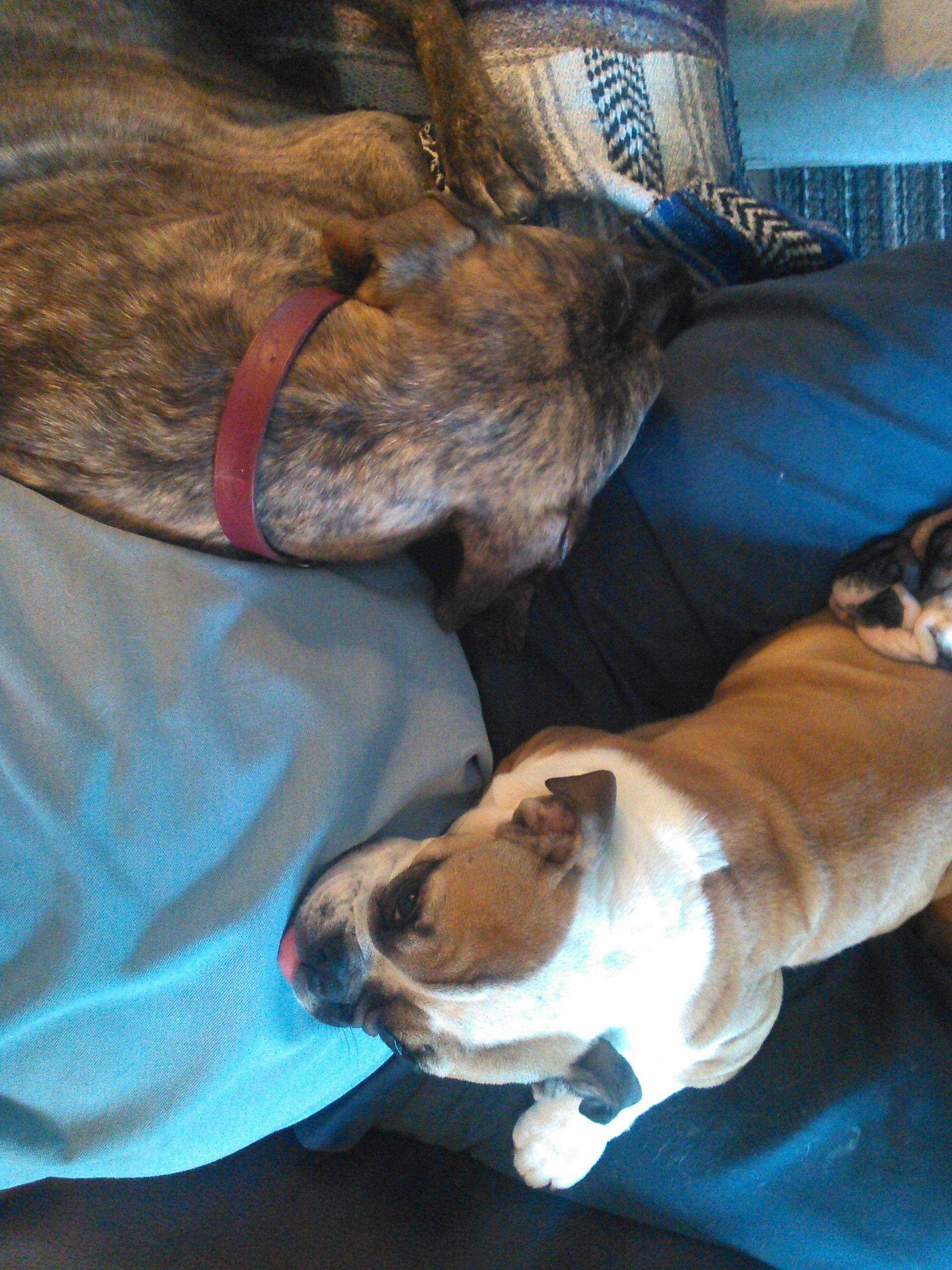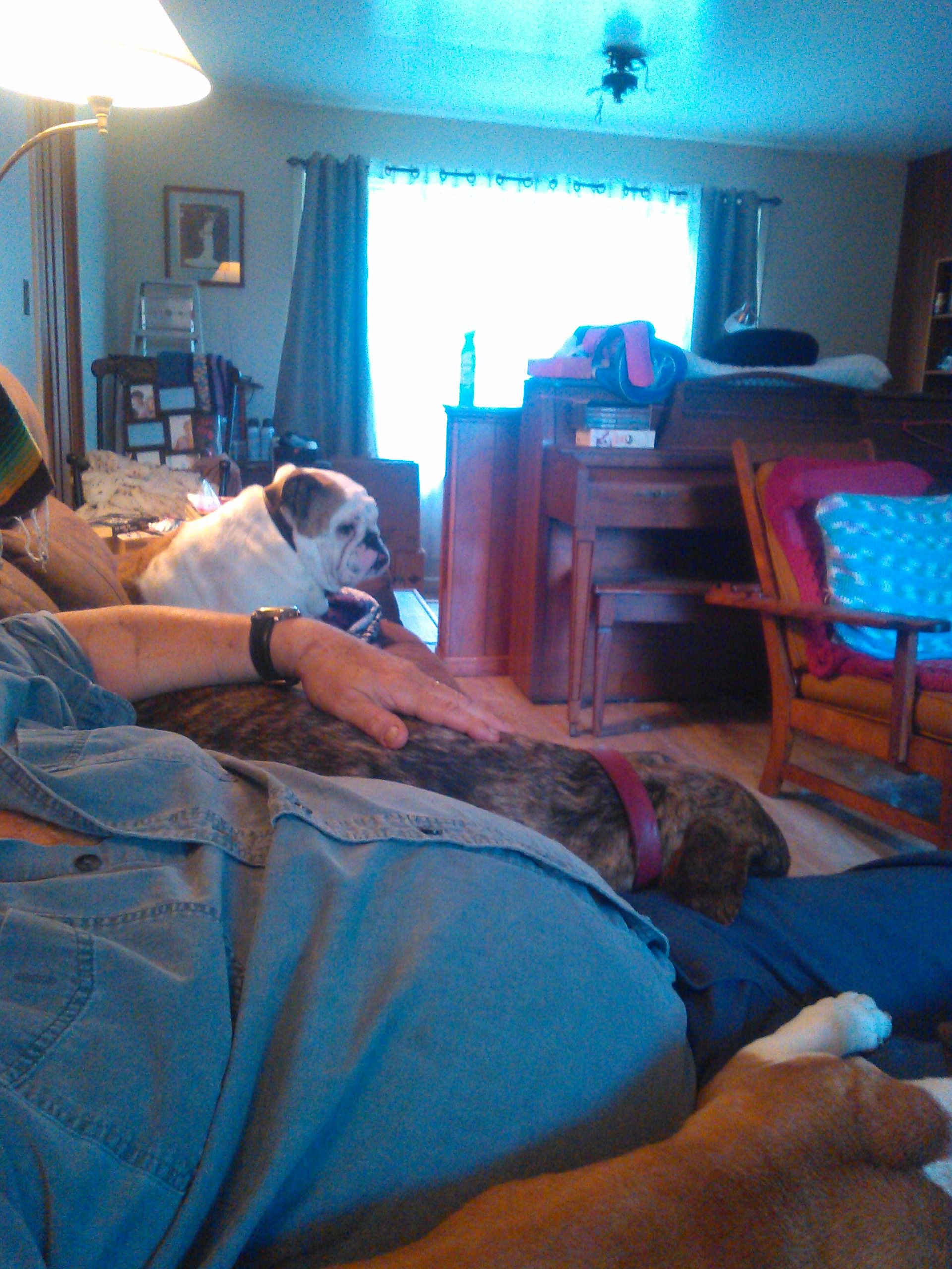 We also do a lot of play time on the bed before they are told "Bed Time " = go to bloody sleep ! All the dogs love that play time on the bed ( we Play hidden hand under the covers they all love it ). That play time is a huge incentive to use the stairs for the bullies . With the couch it is they just want to sleep on me or between my legs for a nap to be honest , its why you see so many pics of my guys doing it here