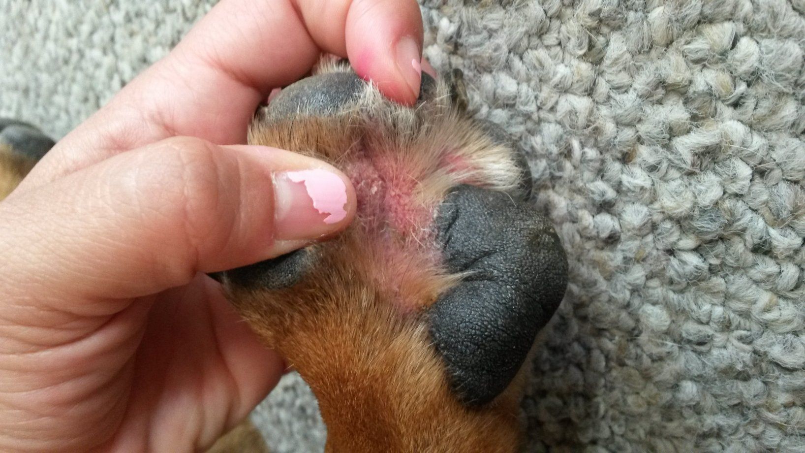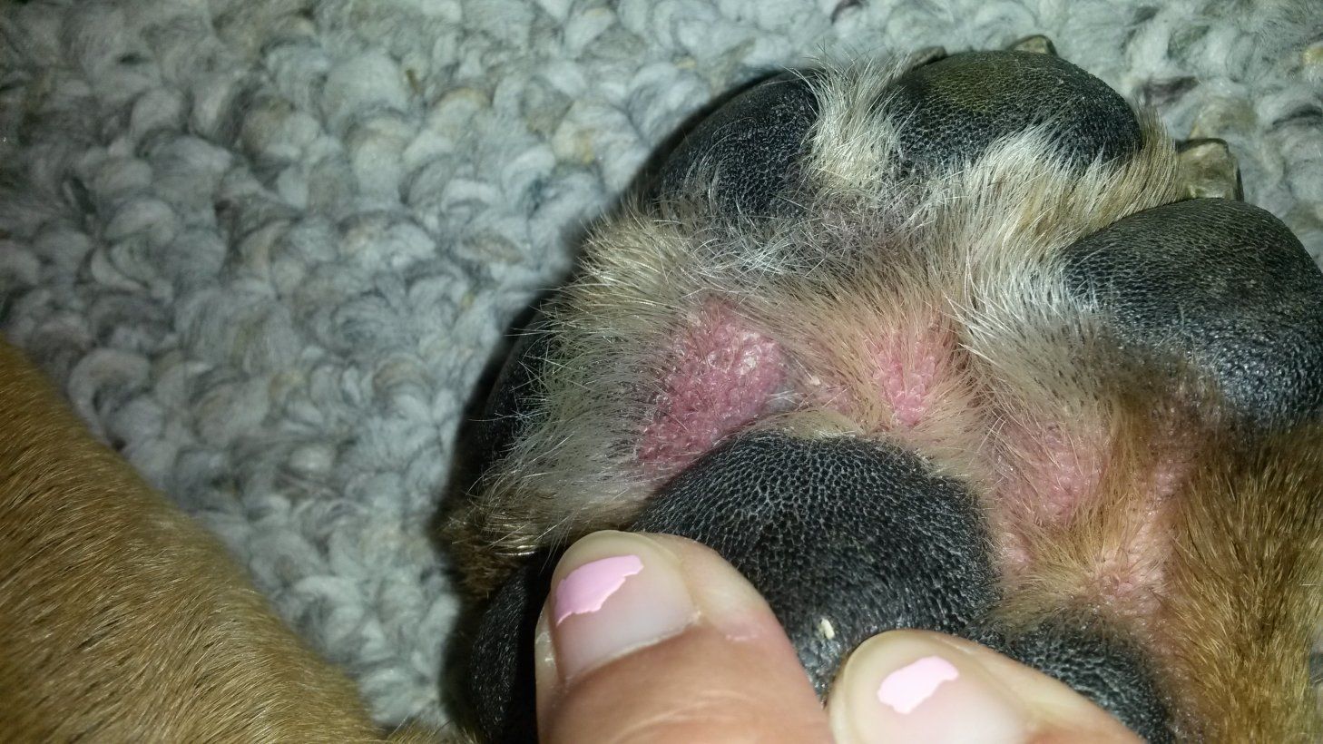 Because of this, his front paws are pink and irritated from constant moisture and licking. I know it's not allergies bc his back paws are GREAT!! Well, here is what his paws looked like today