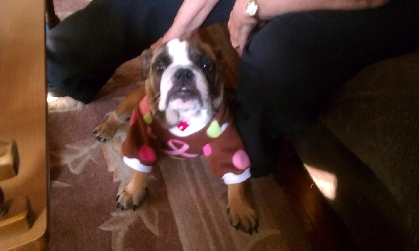 I was bidding on a fleece for Abby during the breast cancer auction but I lost to aprilmari. A couple days later I get a PM from @desertskybulldogs asking for my address, she said she wanted to send me a sample of something. I'm thinking its vitamins or holistic something for Abby so I gave it to her. Today the mailman brings me the sweetest surprise.