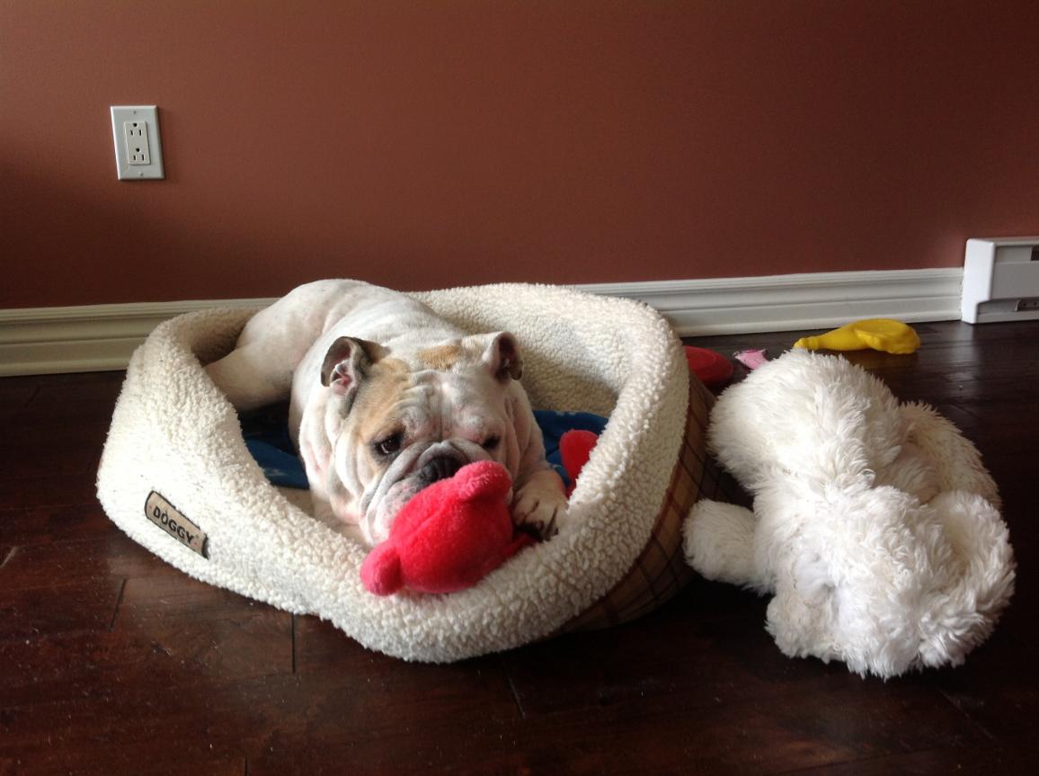 What a cutie!!!!! Bacon destroys all stuffies except for his blue ball which he has had since his first days in his forever home