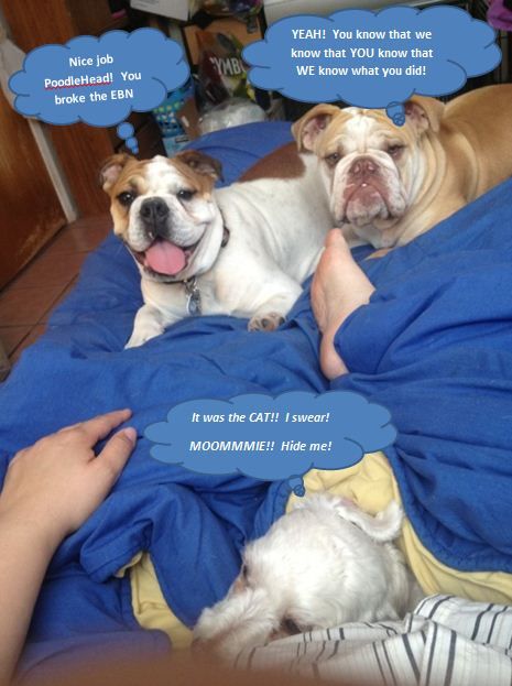 sorry to be off topic, but all this poodle talk got me to thinking since they mix poodles to every breed known to man, what would a bulldog x poodle look like so lo and behold they are called english boodles and they look like schnauzers!