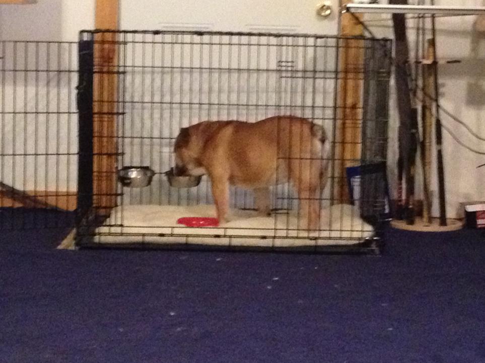 Picture is worth a 1,000 Words, The door is wide open, and this is Rocky inside his crate. Rambo does the same thing with his crate during the day. They both use their crates much like Linus did his blanket, it's a security thing for them. Now you must be asking, is this something you have to start in puppyhood. Answer, Rocky was 9 months old when I got him, he had never seen a crate before, and you see him in his crate with the door open, by the way he's 16 months now. The secret I used, was to allow him to explore it on his own for a few days, then using it to crate him a few hours while I ran errands, then I worked him into it for his own security. Both of my boys are very well behaved, with one exception, when I have company, they get so excited, they team up on who ever comes in, So I ask friends to call before arriving so that I may crate them both before they come in, after settling down, I can then uncrate them and allow them roam again. Hope this answers your question with a picture statement.![]()