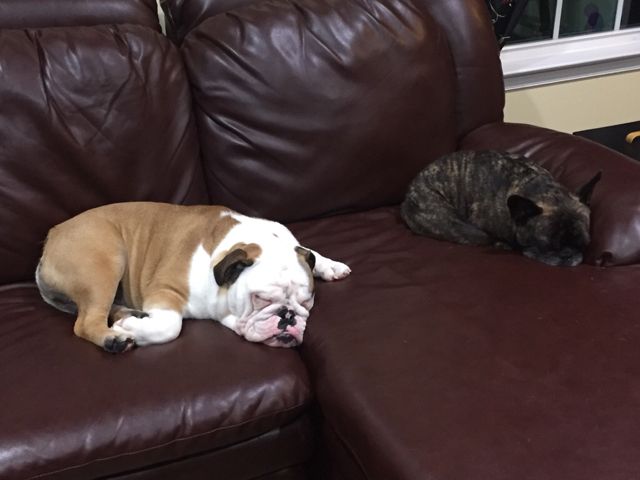 How funny! Winnie is our snuggler and she will snuggle with Jack. He lets her snuggle for a while, but then he gets up and moves. Would Lambeau snuggle if Cheli would let him? I love your boys--they're both so cute! I'd love to have a Frenchie someday! [MENTION=2894]2BullyMama[/MENTION]