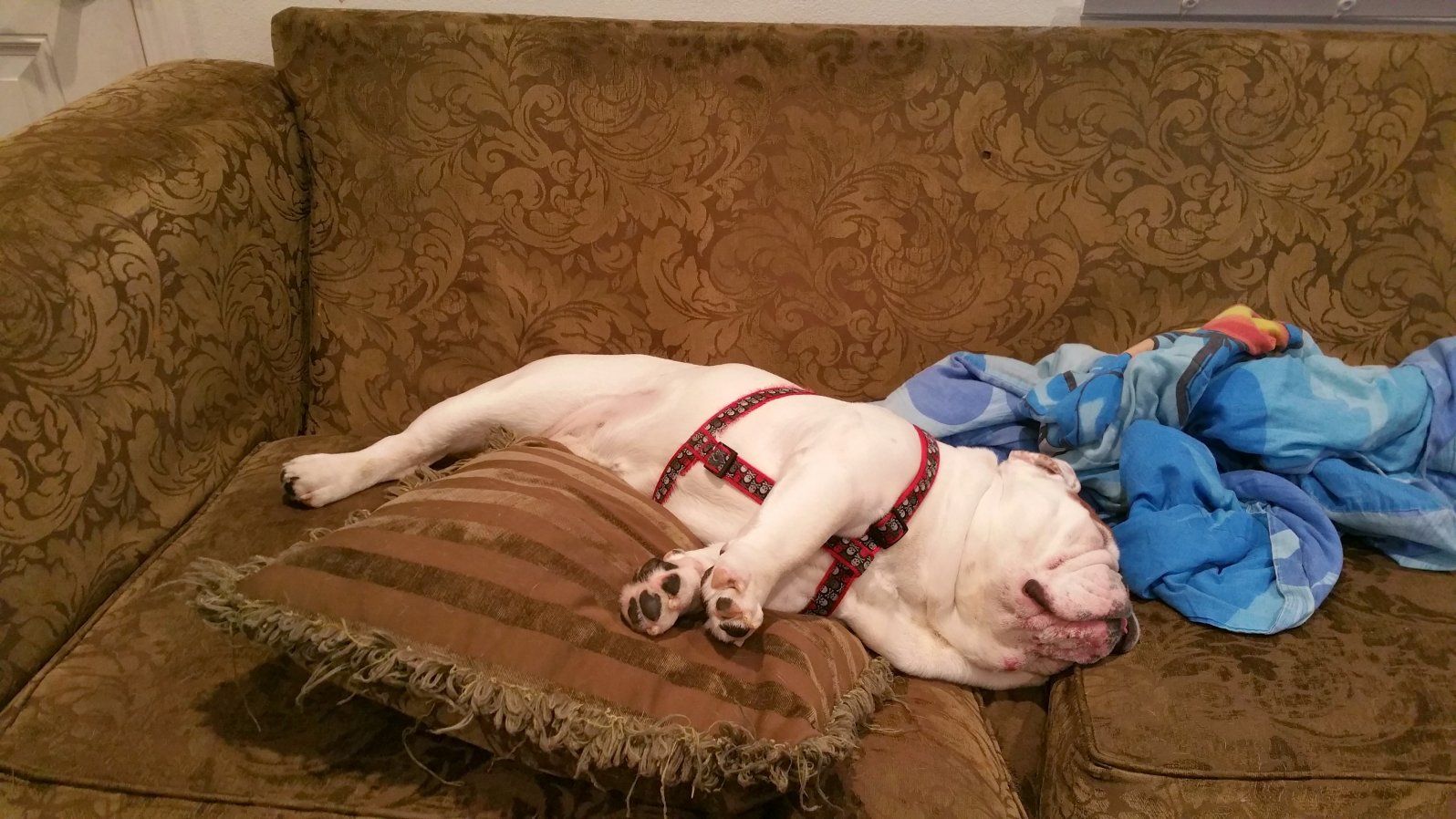 beau knows I have a no dog lay on the cushions rule. She makes them smell very doggy and I have to wash them all the time. She knows this, however came down from doing the ironing to find her lounging on 3 of them !!! Notice how she can't look me in the eye ! Sneaky dog !