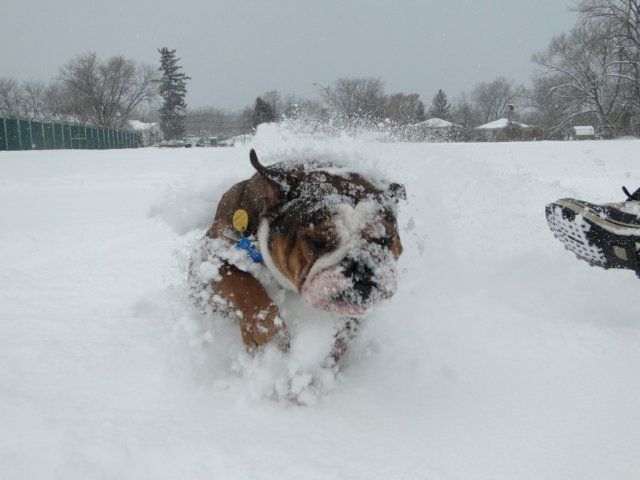 Yesterday morning when we seen all this snow, I went to let the dogs outside when we got up in the morning, and my 2 other dogs LOVE it, and the snow is up to their chest, we had to shovel a area for Rusty cause it would be over his head! He looked at me after I shoveled, and ran around the table in the house to avoid the back door!