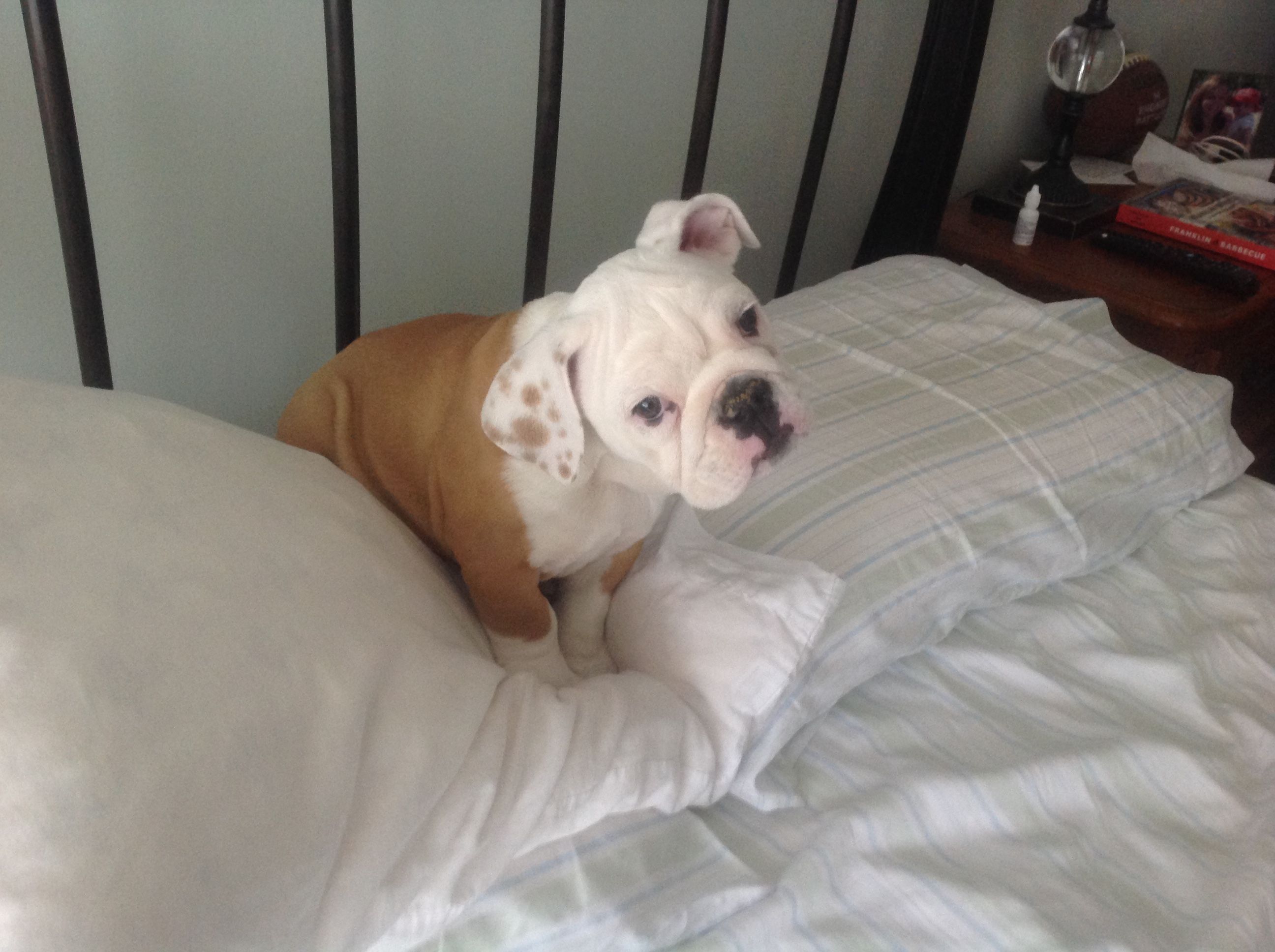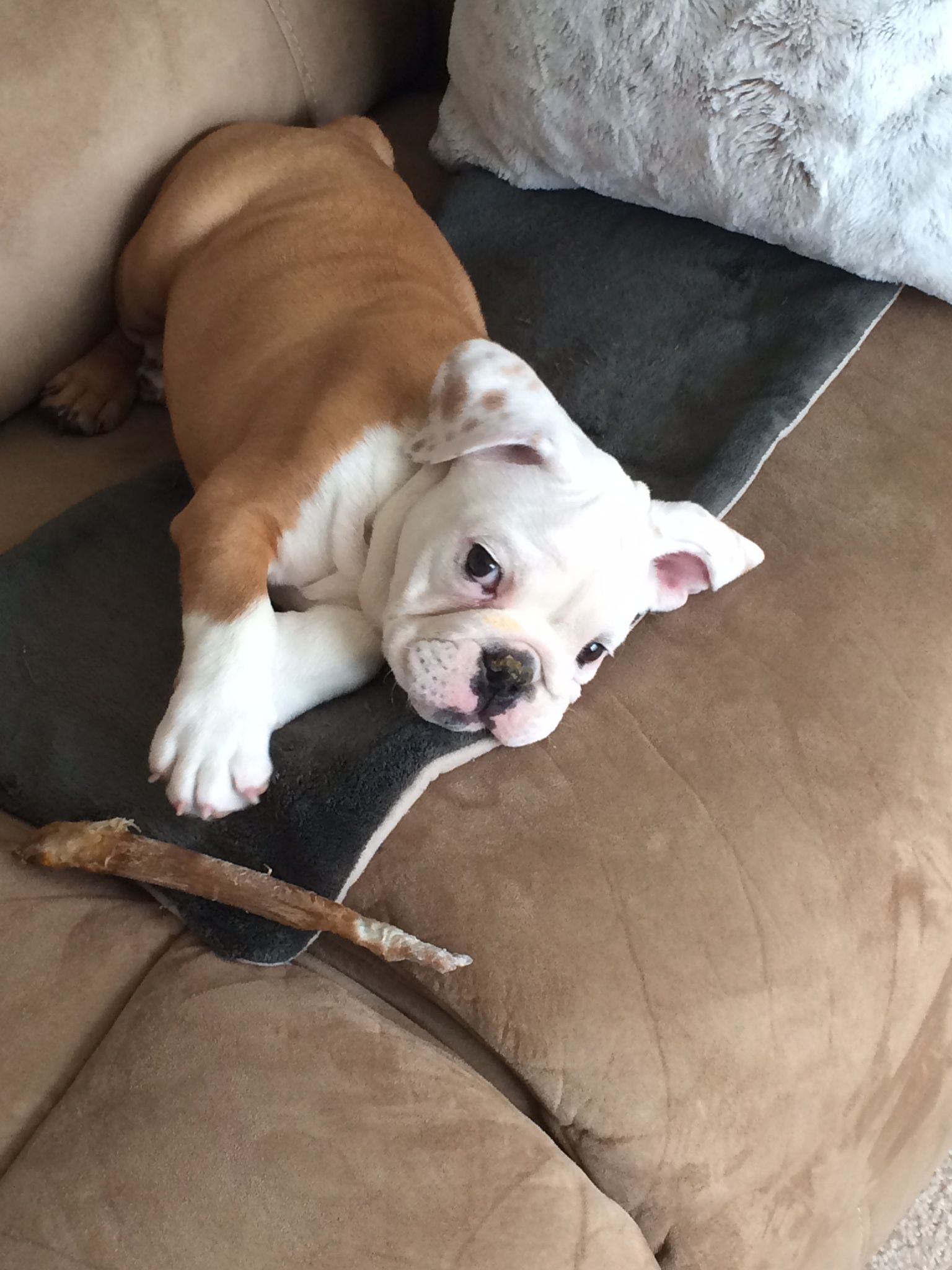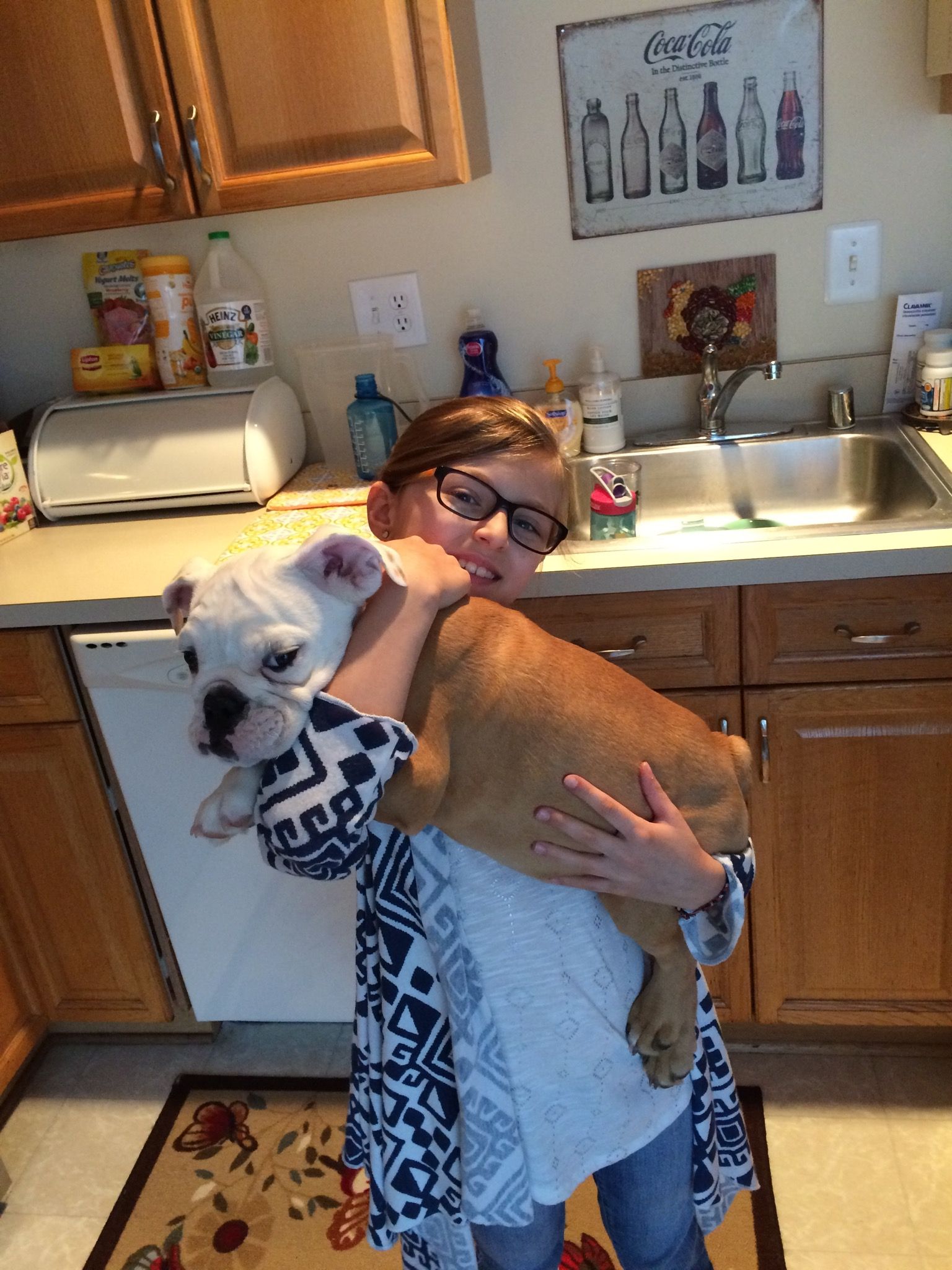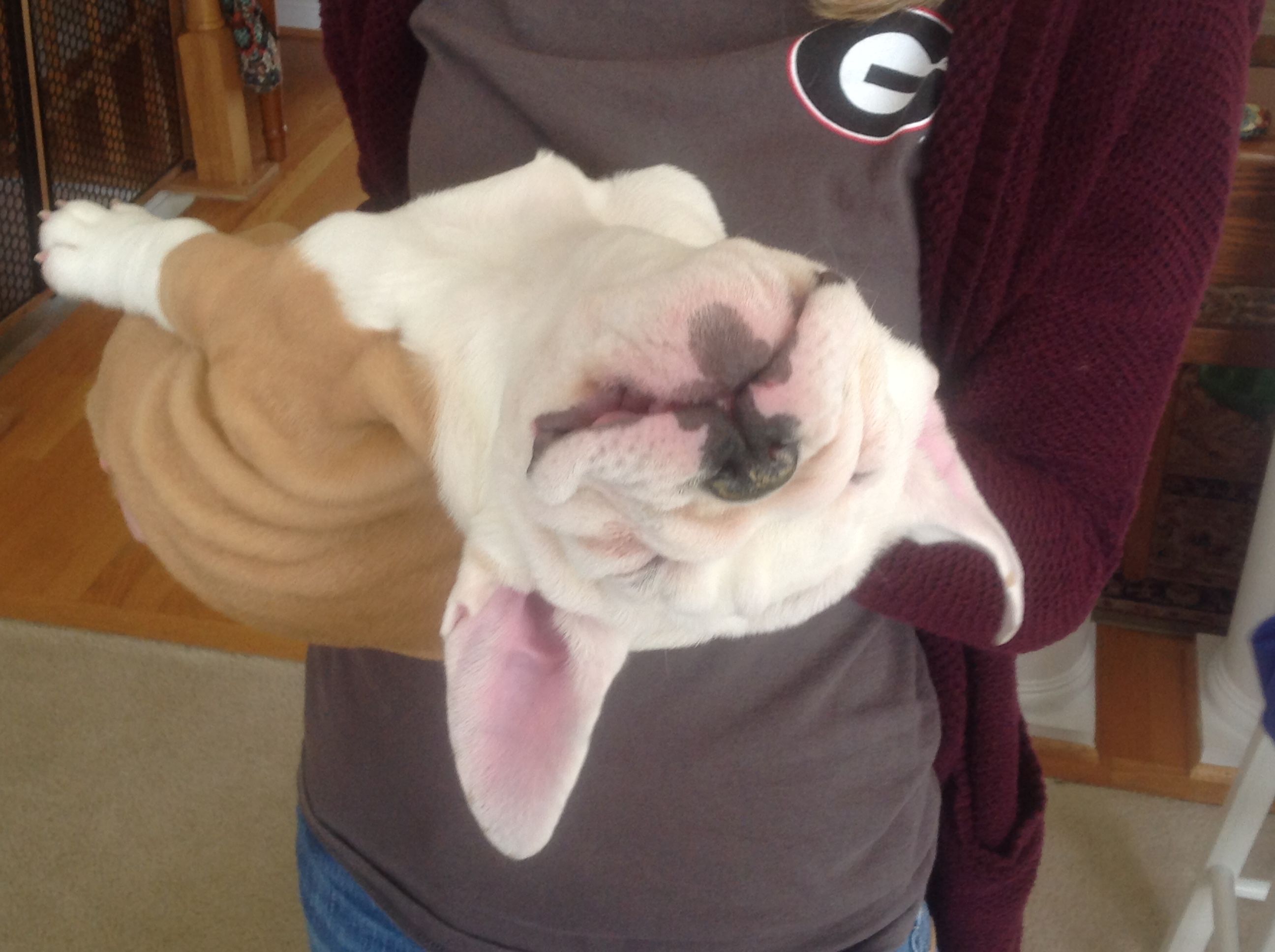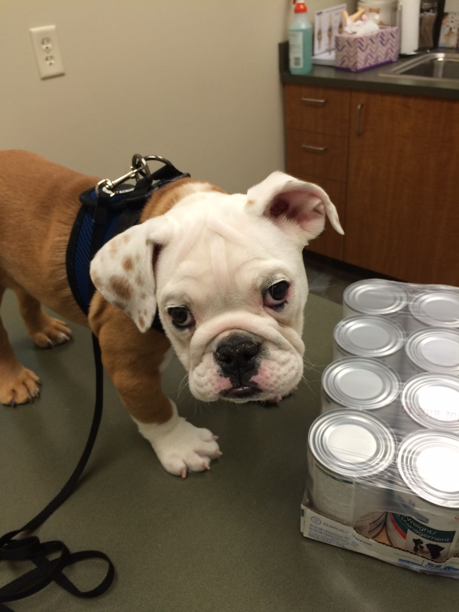 I haven't been online for a little while. We had spring break and went home to see family. I wanted to give a quick update on Gigi. Her pneumonia recheck and third set of X-rays were done yesterday and we did not get good news. I kind of knew we wouldn't based on her overall improvement, or lack there of. The X-rays showed no improvement in the pneumonia. They refilled her baytril and clavamox, this is her third refill of those. They gave her a steroid injection, and if she shows any improvement in the next 48 hours, they will prescribe her an oral steroid. They also want her on a bronchialdialator, it has to be made at a compound pharmacy, so she hasn't started that yet. If all of this fails, they want to try a tracheal wash. They are extremely hesitant about it because she has a severely narrowed trachea. In addition to all of that, the megaesophagus that was present on her very first X-ray, has not improved at all, and she has had some regurgitation issues. She is still holding down most of her food, but the vet recommended an elevated feeder and maybe a mostly canned diet. Right now, she's on mostly kibble. She eats Acana pork and squash. Is anyone feeding a canned diet that works well? Can y'all recommend a canned food that you like? Keep in mind she's only 4 months old, so I guess a puppy canned diet would be best. I saw that wellness had a puppy canned food, but it contains chicken, and I know many Bulldogs don't do well on chicken. Any advice on anything I've mentioned would be helpful and appreciated, this is new territory for me.