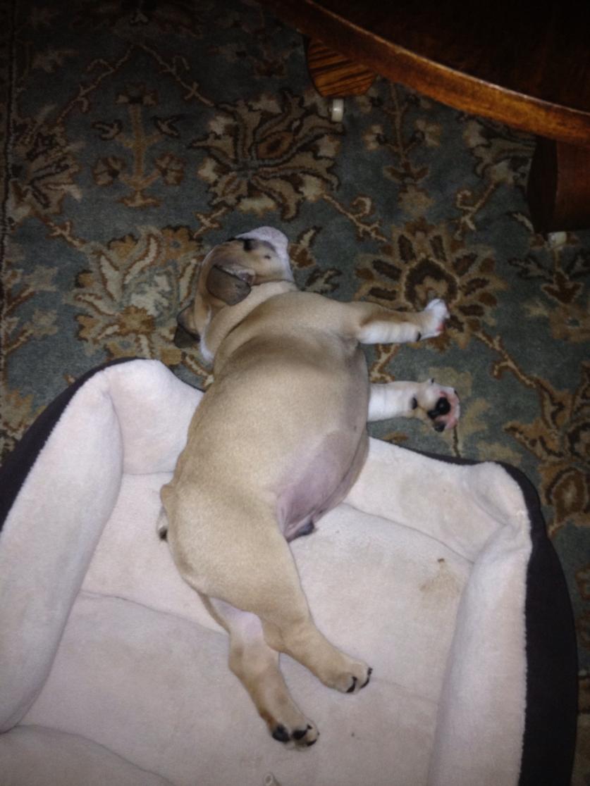 OK so Dooley has been with me a week now and everything's going great. He is adapting very well to his new home. But when it comes to nap/sleep time or whatever, he bounces around from spot to spot. From his bed to the tile floor in the kitchen, back to under my feet at the couch. Then to the rug by the door, and back to his bed. Up again and lays at the fireplace, over to the back door rug, back to his bed. So on and so on. I think y'all get the picture. He never stays in one spot longer than a couple seconds.