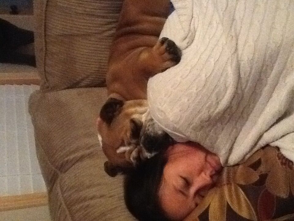 This is a pic of paisley asleep with my wife on our couch.