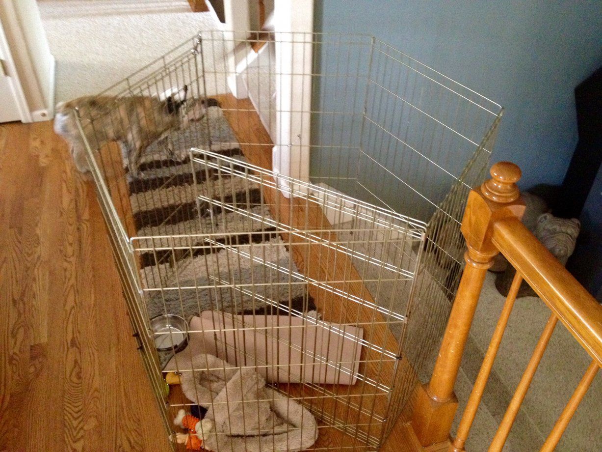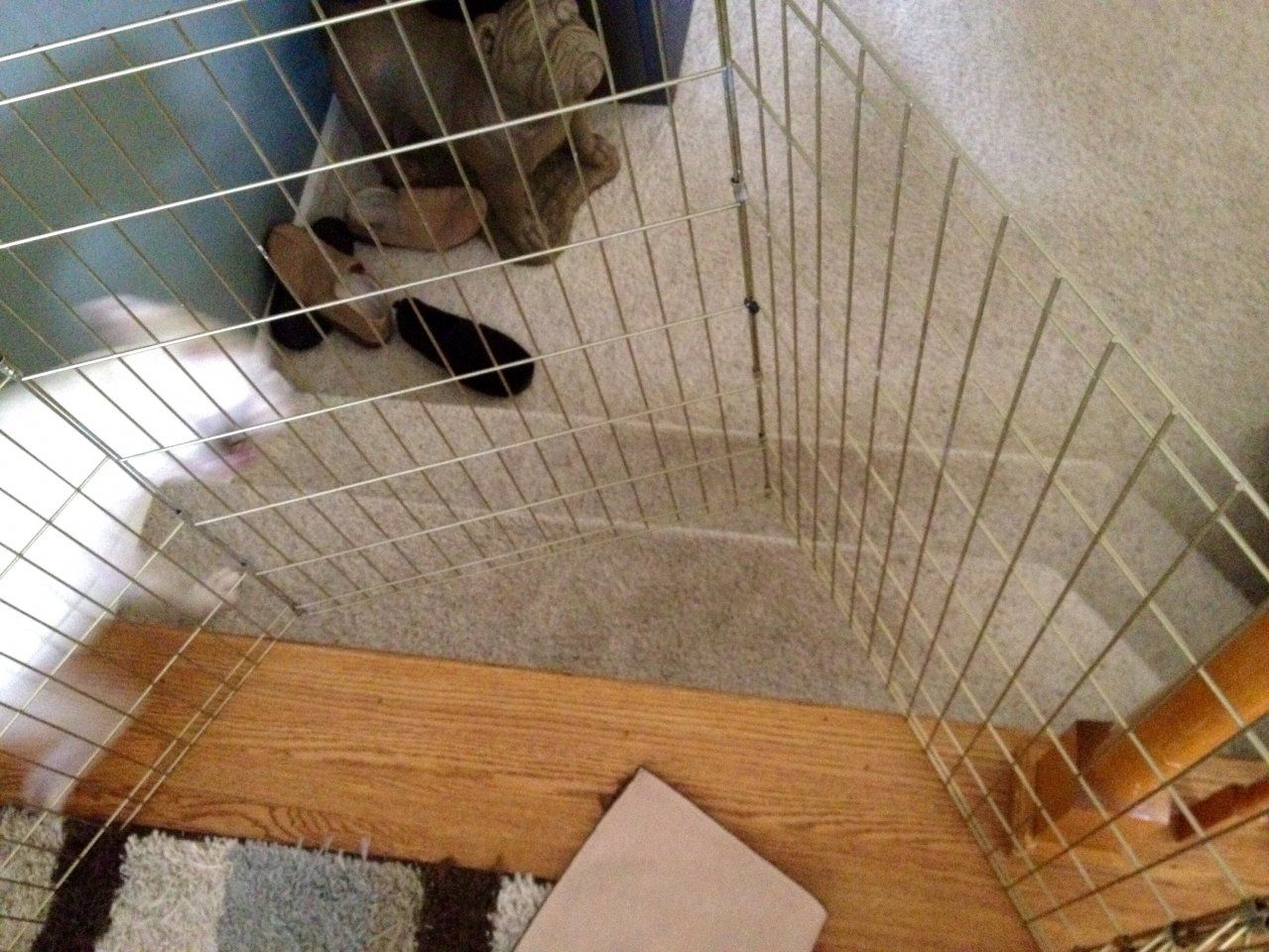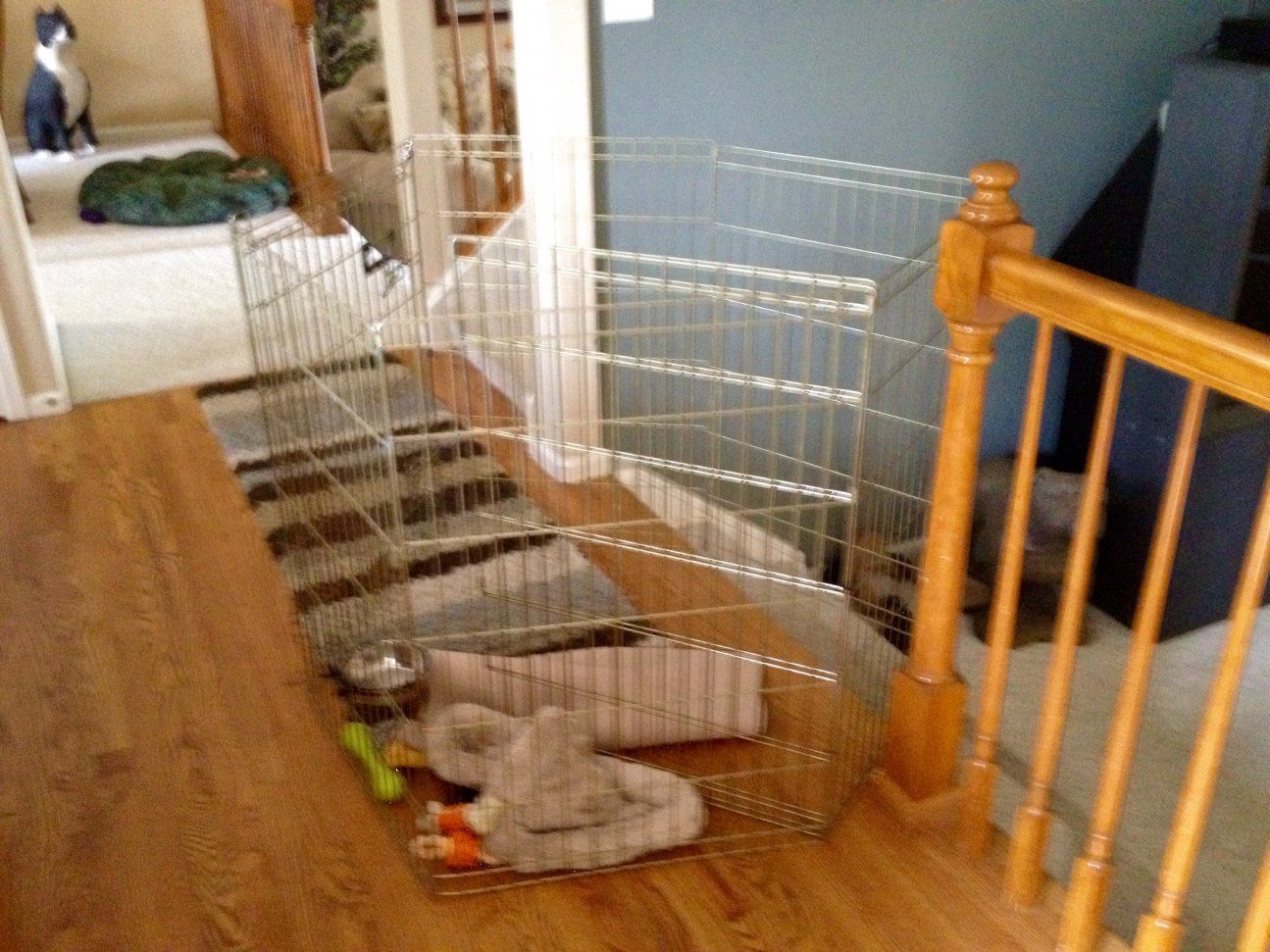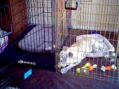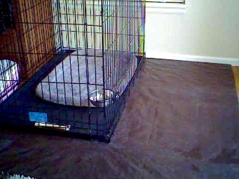 When I was working in an office I had the VueZone cameras and just happened to check in on her. There's a crate on the left and she was in the X-pen on the right. Here's what I saw when I peek in.
