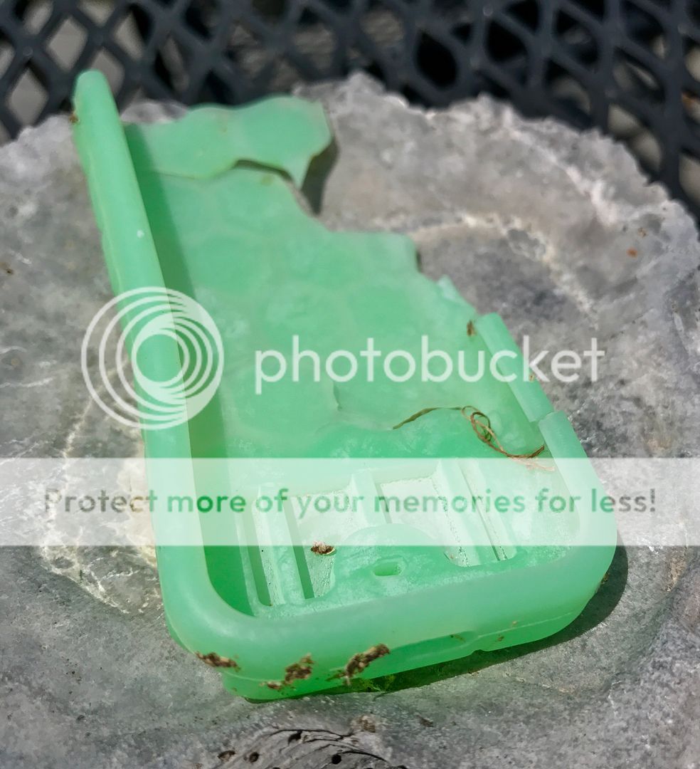 Holy bullie, this is lucky accident! So cool he passed it without trouble!We can finall bring this saga to a close. Kash pooped out the remainder of the cover 2 days ago. He did it without any problems. It simply looked like a green turd. Had I been paying attention and it had happened at night it may have been one of "those" moments. A bulldog poops out a glow in the dark turd...a first for sure. Oh well, thanks for being concerned and following along through til the end.