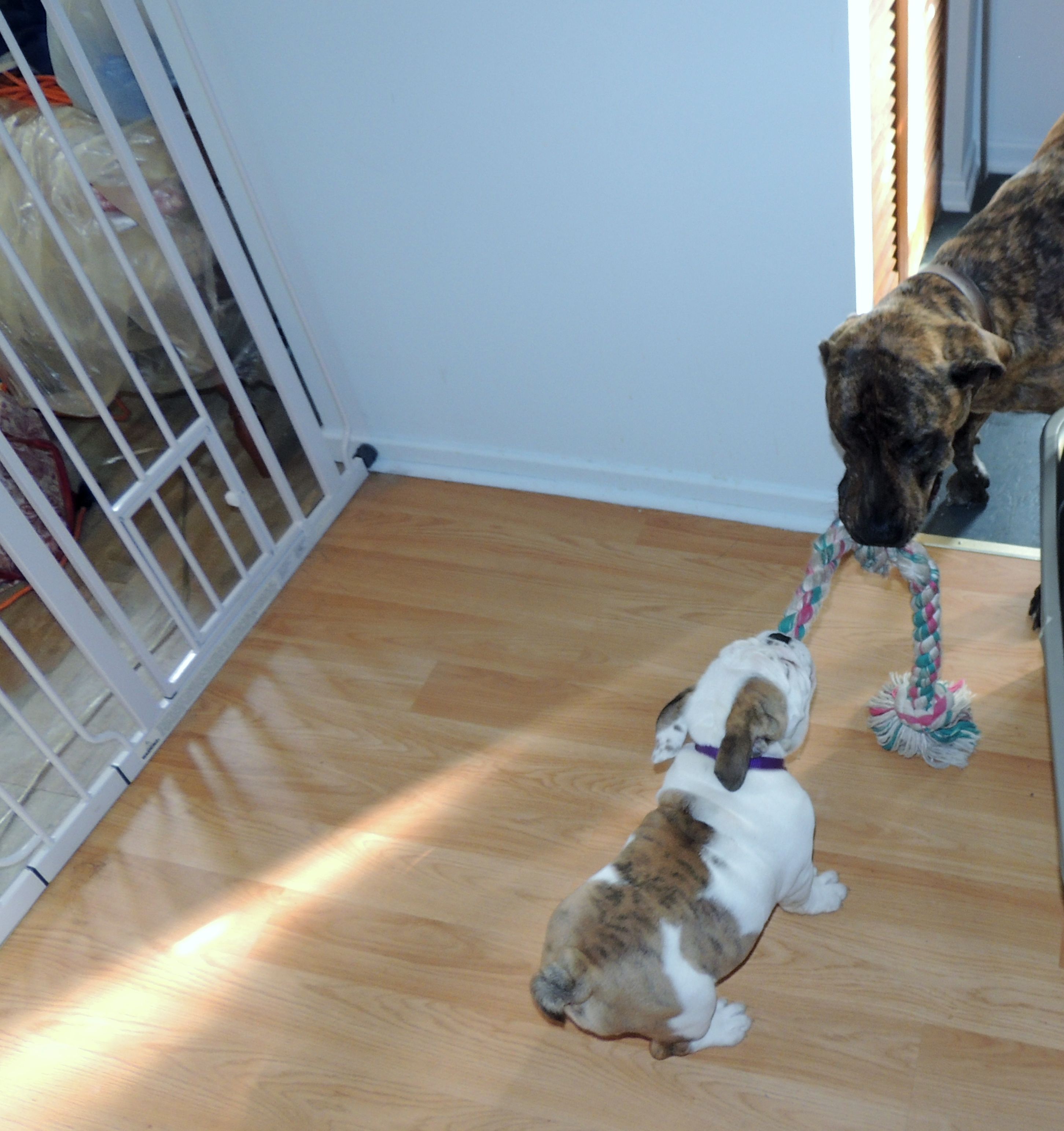 Anyhow we finally all get home Odin is STONED and due to the sedative cold and shivering as he is coming out of it , The first thing Rosie does is clean his face then his ears and then try to get him to play ( they play a lot together, Mutt and Jeff ) pulling on his harness to get up ect ect , she finally gave up and fell asleep in front of him lol