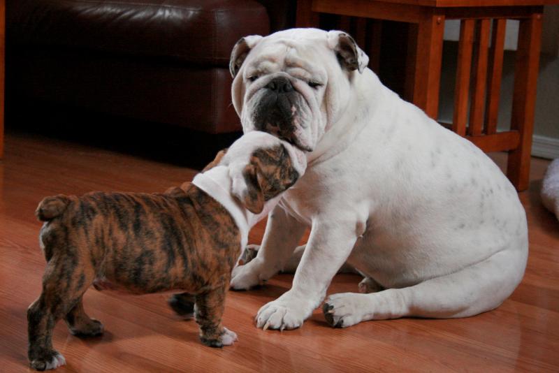 This is a 100lb bulldog that our rescue group just took in. Needless to say, she is on a diet and exercise regime before she is adopted out.