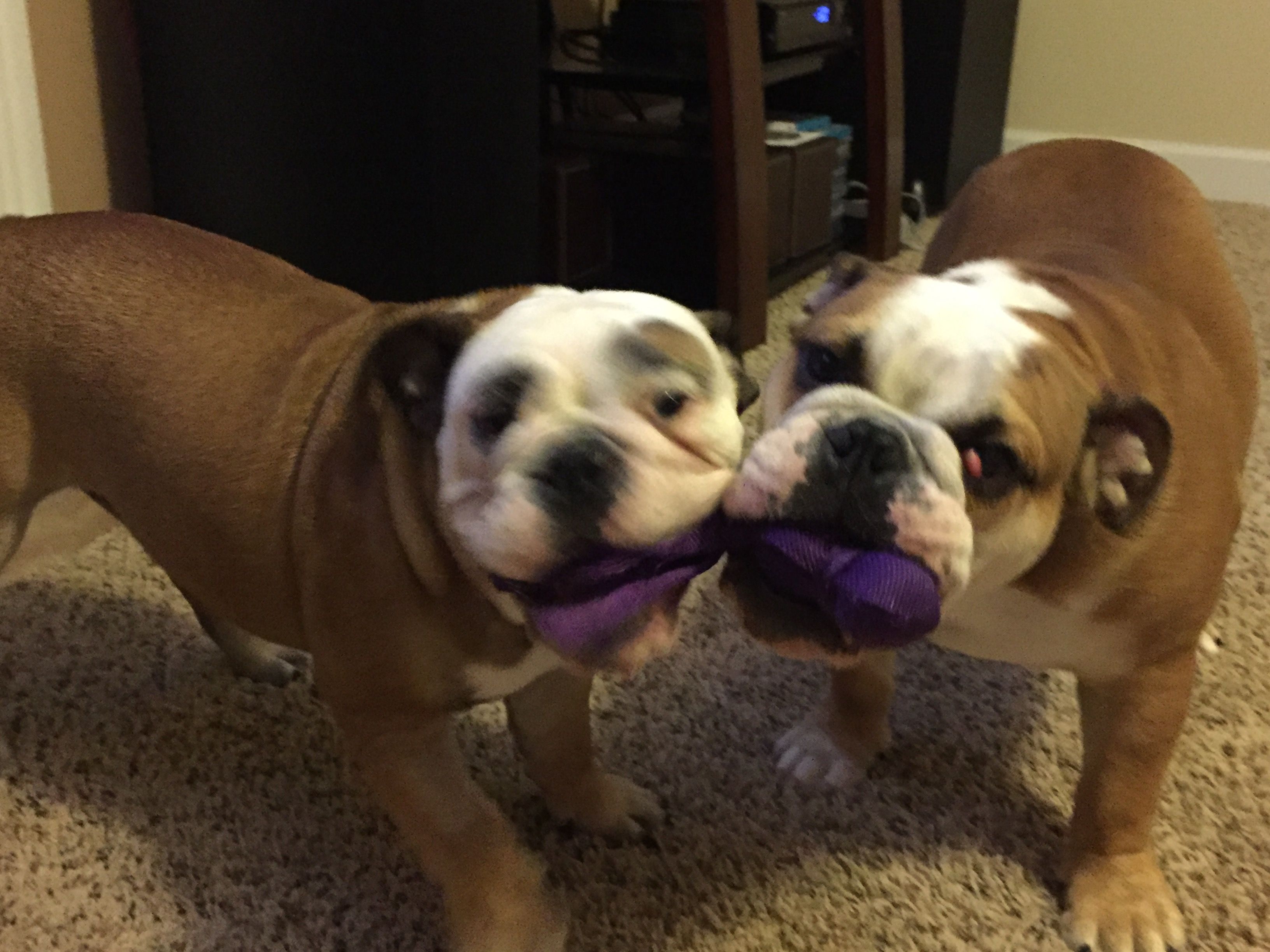 good luck with the new toysWe have a pet store around here called Natuatally Unleashed that's really nice. I went there yesterday and got each of them a benebone and a hard plastic bone by Play Spot. They just got those in and it says "virtually indestructible", but offers 100% guarantee and if they chew it up then they will replace it! Worth a try! They did carry the Planet Dog toys there, but they seemed really soft? Maybe I'll get one just to see how they hold up. They have the hard plastic Kong "rope" and one of them is already almost chewed through. We got those last weekend. Trial and error at this point. Lol- we learned early on that we can't get anything plushy- instantly destroyed! Lol. Lockjaw even sheets through the material on the Kong Wubbas!