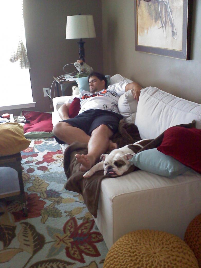 My wife took this picture last week. The weather her is not bulldog friendly at the moment so this was how we spent our afternoon