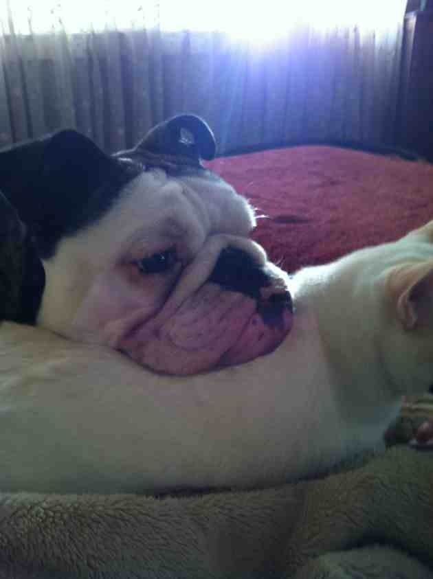 My Tonka loves to rest his head on my office chair legs too! How funny! It's his favorite place when I take him to my Boutique.