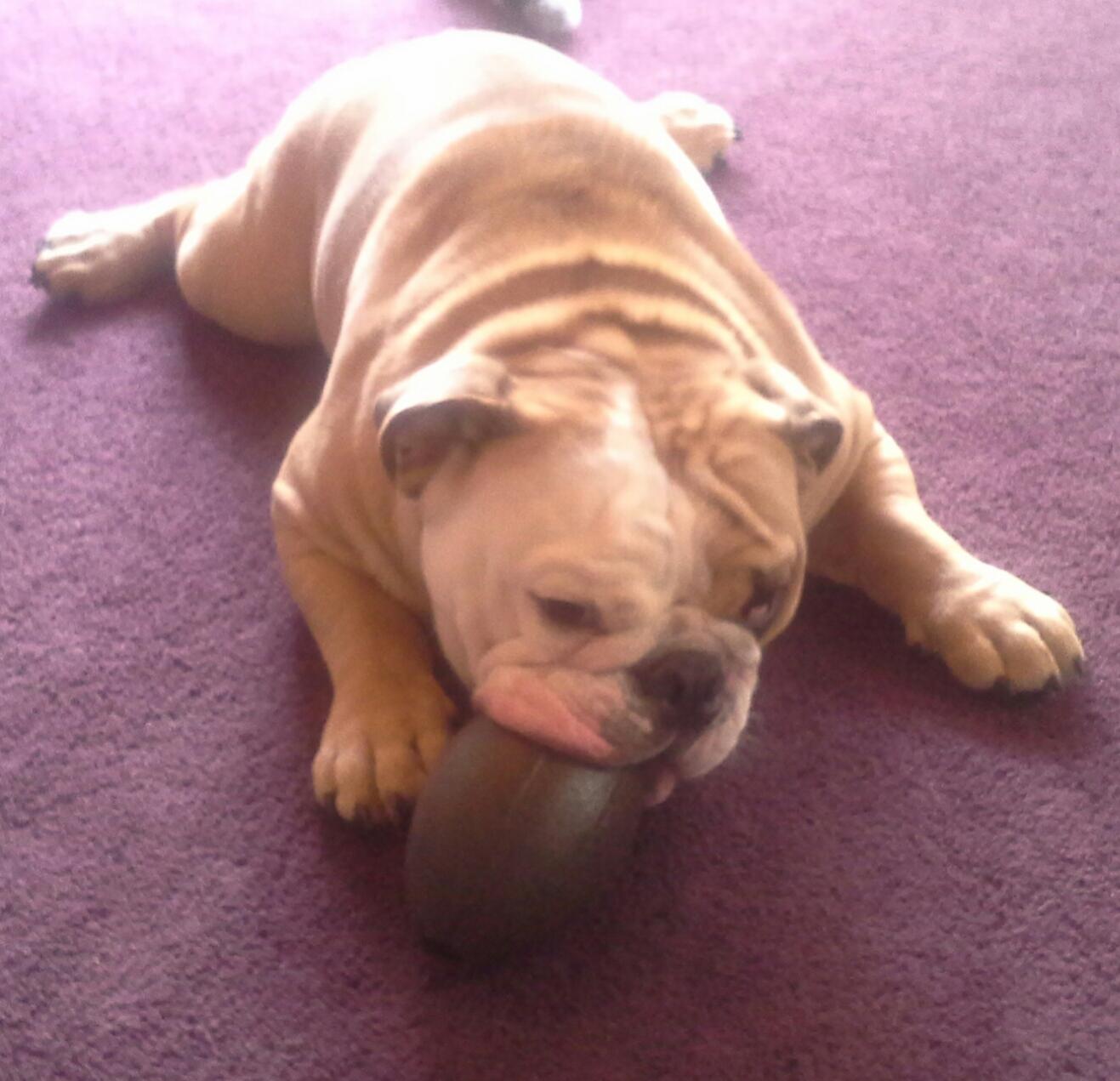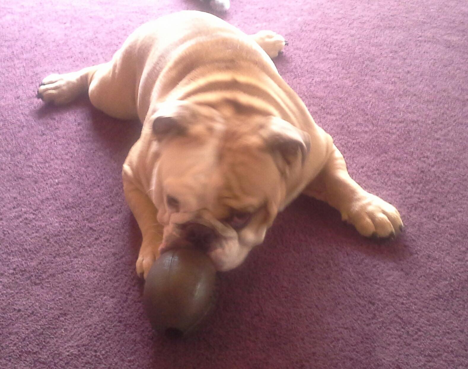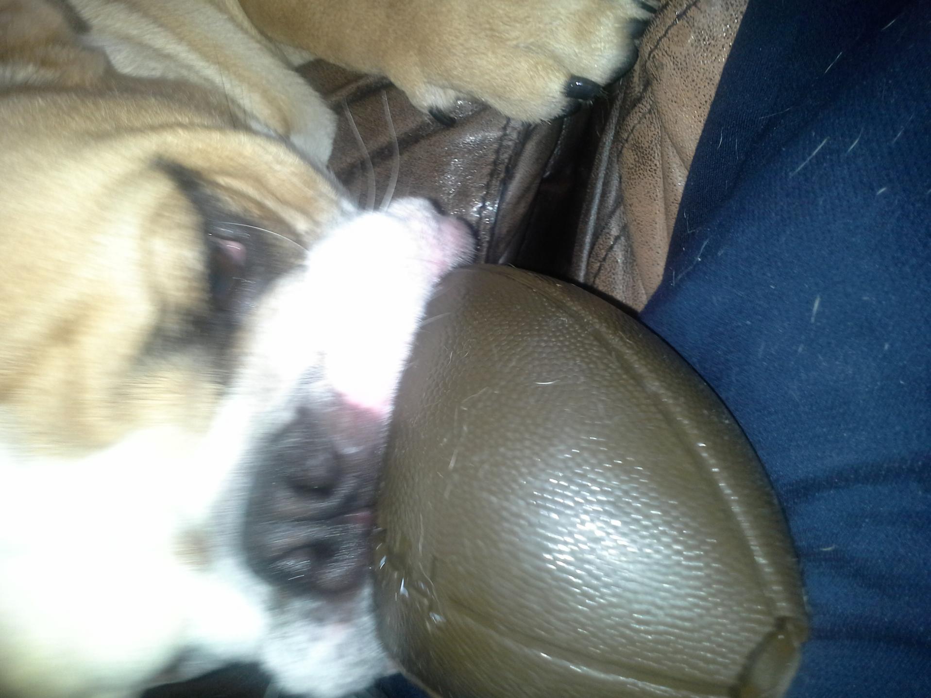 HAHA, Buster is loving his ball, is he?! Did the white strip come off already, Phil? It's a pretty tough football, isn't it?