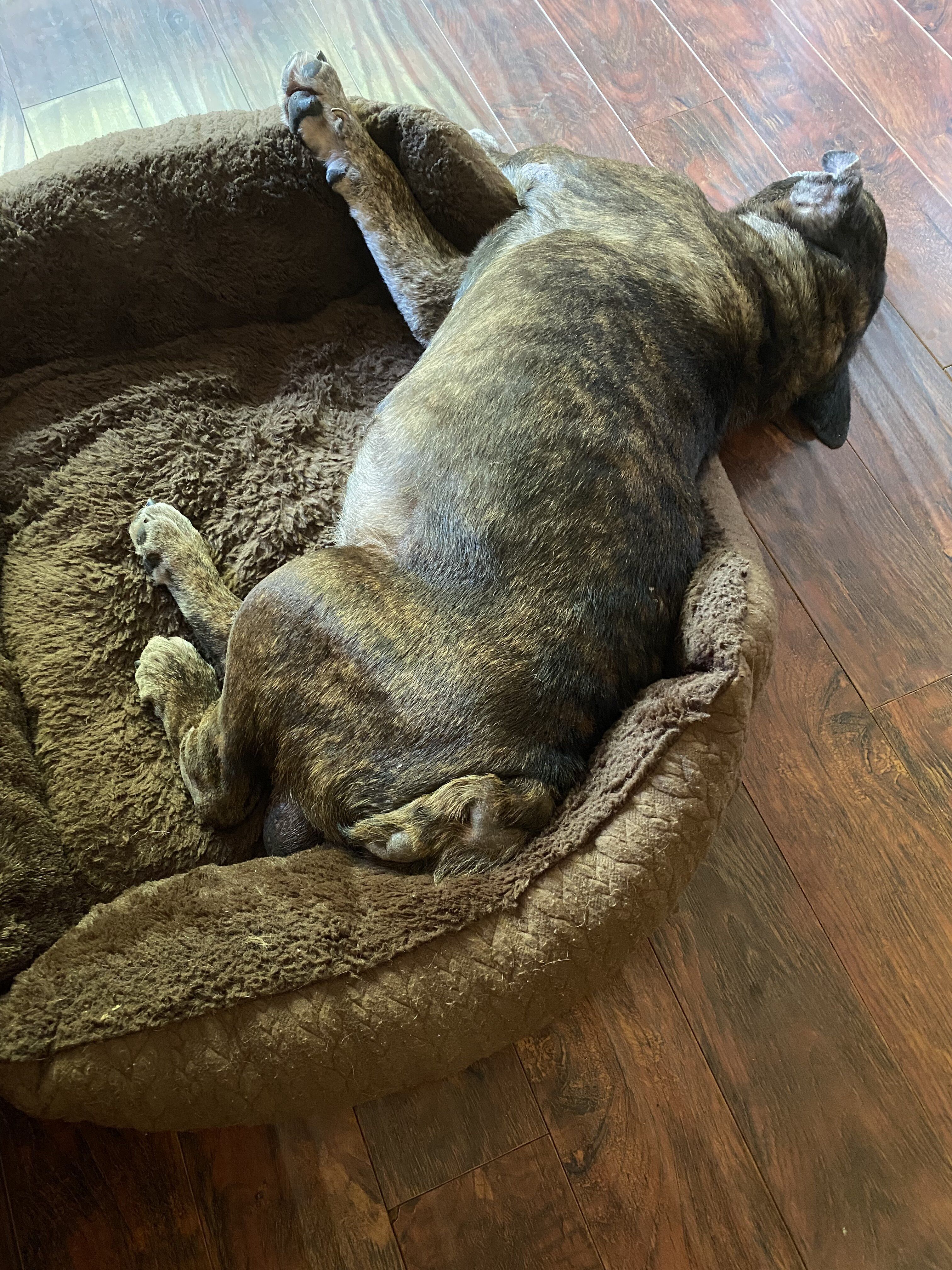 I don't know why he likes to sleep halfway out of his bed... silly coot.