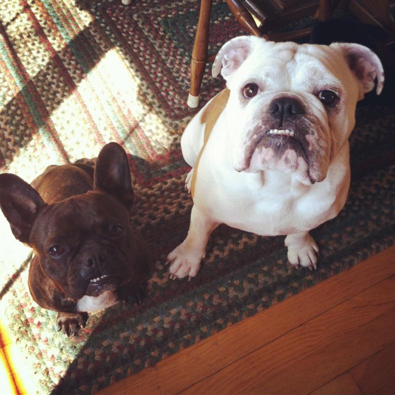So today we are at the park like we do everyday and a lady noticed my frenchie first and complimented how cute she was, but when Gio came running down the path and the lady gasped and went on to tell ME how unhealthy english bulldogs are and how many health problems they have, and she knew this because she watched a special on them 3 years ago! UMMMM THANKS! Ya I politely told the lady that I know everything about this bread all ready and was fully aware of the health problems these EB have before I adopted him, and I also went on to explain that these guys still have great lives even with the health problems as long as the owners take care of them like they should! BUT THEN I brought them to the groomers for a bath and when I was there I saw a guy with an Olde English and was telling the guy what a cute dog he had and that I had an english and french getting bathed, and the guy did the same exact thing the lady at the park did, he began to tell me how unhealthy they are! Is it just me or does anyone else ever have this problem?! I was so taken back by this, I have gotten these comments before but both people seemed as if I was a bad person for owning an EB! But then I saw Gio running around and as happy as a clam and realized that they are just jealous they don't have a sweet, happy, loving, funny dog like my Gio!:D