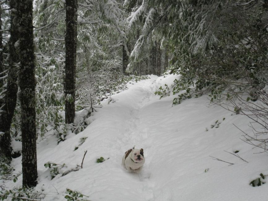 man that looks cold are they OK in the snow? I have a puppy and I was wondering about the cold for them I know heat is bad but what about cold is there a limit where you have to put a sweater and booties on them lol.Just thought I'd post a pic of Izzy. She loves going for hikes, probably most of all meeting the people and other dogs on the trail. Anyways, here's a pic from last weekend: