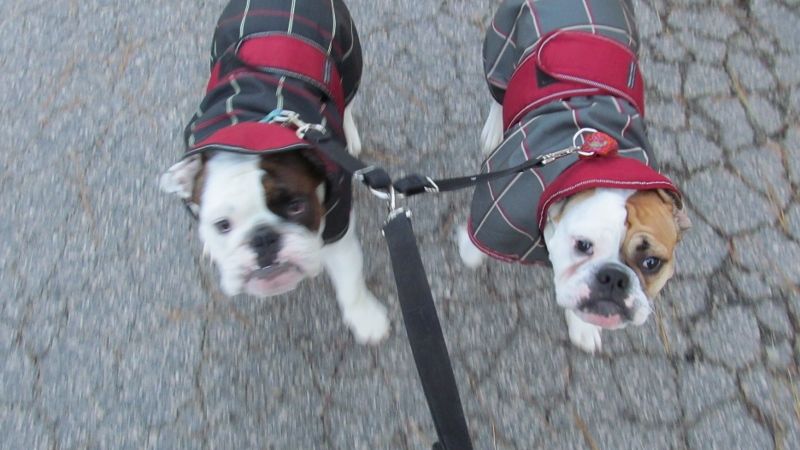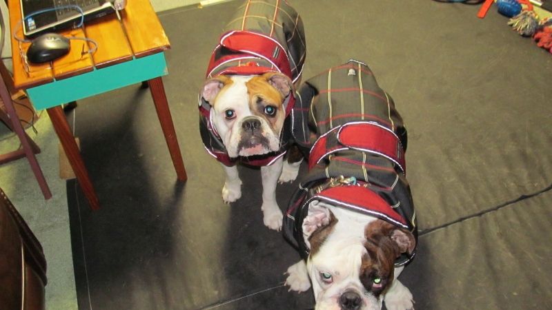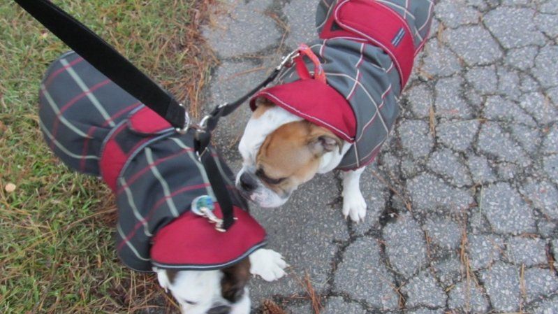 So my California dog needs some winter coats to survive his first winter on the east coast. I have a XL jacket that fits my frenchton (who is just as long as Curly but not as wide) and the length is perfect but the strap won't go around his broad chest. Curly would probably need to wear an XXL for anything to fit around his chest/shoulders but of course it ends up being too long and covers up his pooper shoot. Does anyone know of any good bulldog clothing companies online? I think I might have read something once when I lived in CA but I couldn't find it...