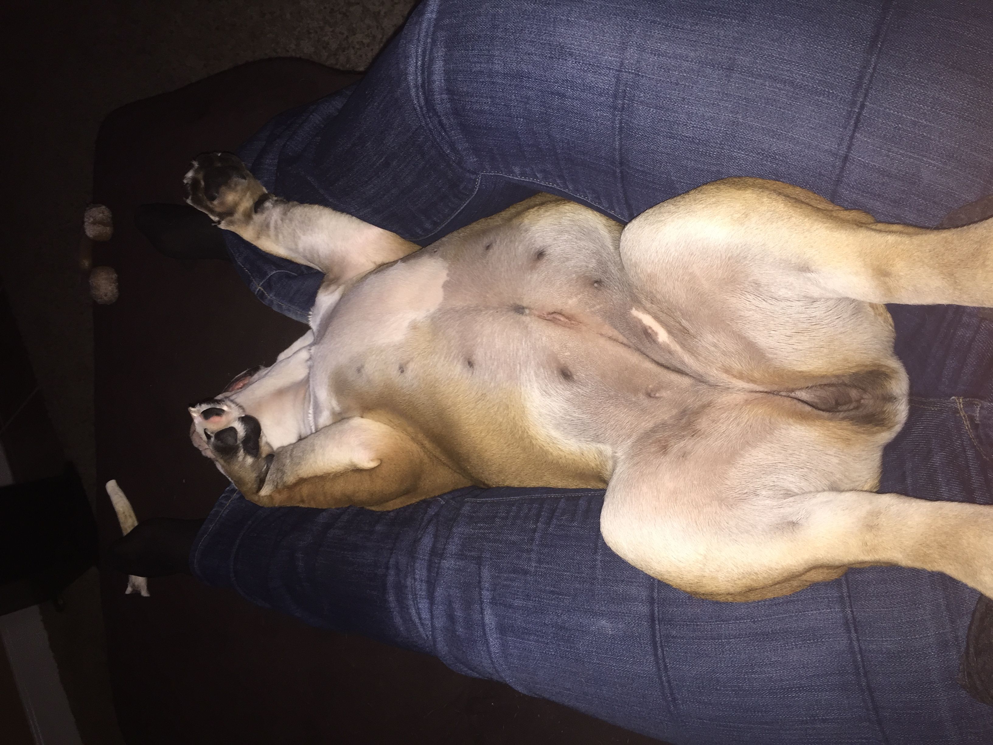 so yes, I think she's just where she wants to be! Murray does something similar too if I'm under the covers he likes to get on top and find a way to snuggle that suits himJumped up here with me and passed right out!! She's actually keeping me pretty warm! LolView attachment 93769
