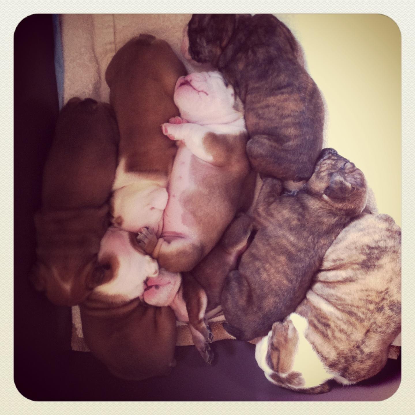 #4 - More piggy pile... Winston is on the top right w/his huge head!!!